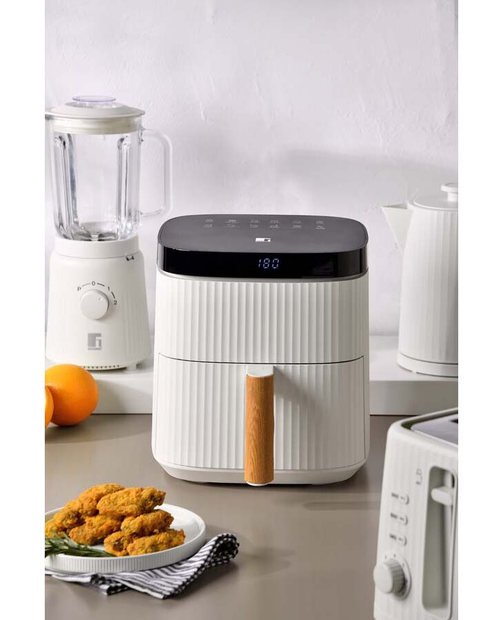 Фритюрникът с горещ въздух Bergner Lines с капацитет 5 литра и мощност 1500 W е перфектният избор за здравословно готвене без използване на излишни масла. С иновационната си технология за циркулация на горещ въздух, този фритюрник гарантира равномерно и хрупкаво готвене на любимите ви ястия. Идеален е за приготвяне на картофки, месо, зеленчуци и дори десерти, като запазва вкуса и хранителните вещества. С интуитивния си контролен панел и различни настройки за температура и време, приготвянето на храна е лесно и бързо. Освободете кухнята си и се насладете на вкусни ястия без чувство на вина с фритюрника Bergner Lines!