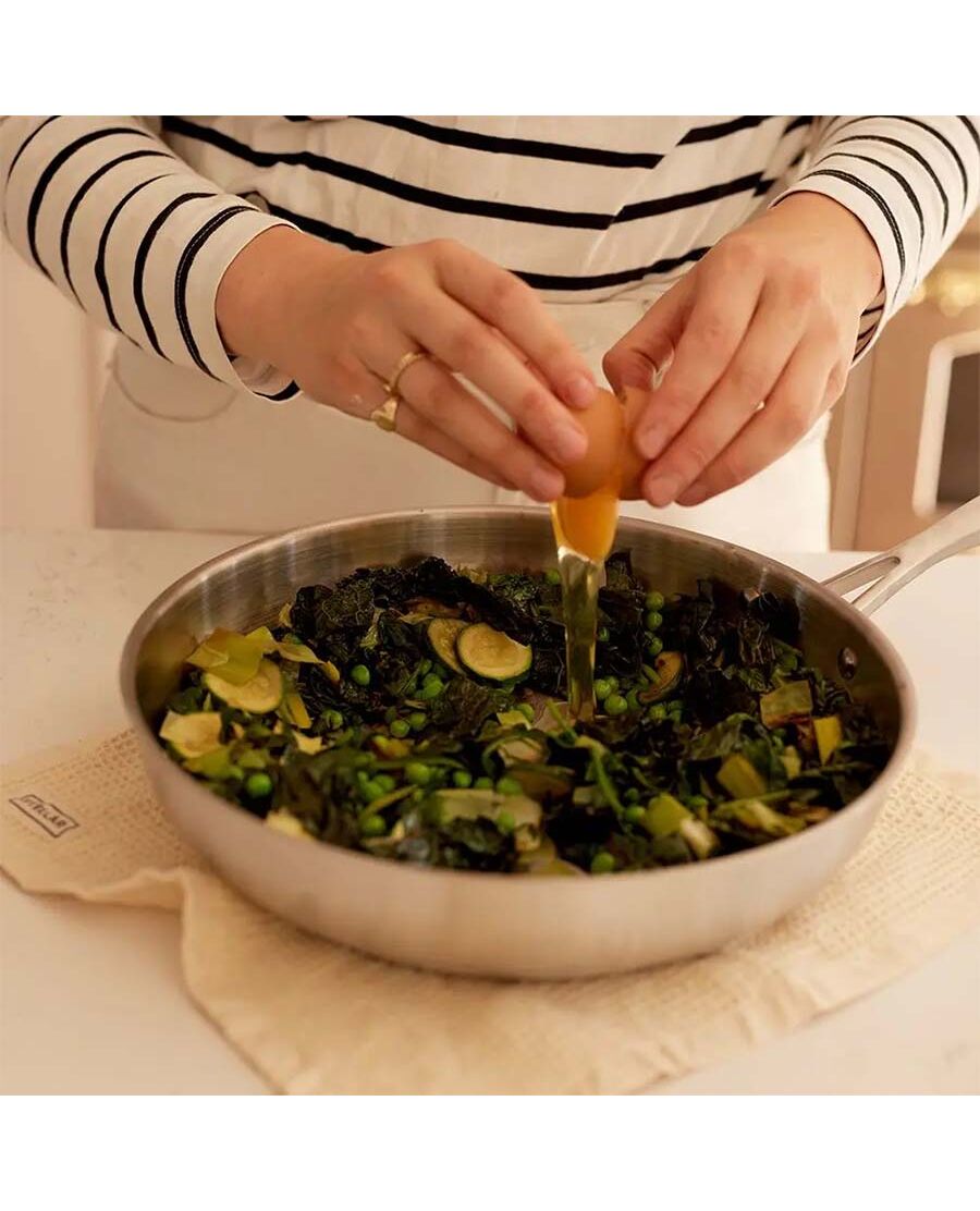Тиган Stellar Profile 28 см – професионален капацитет и безкомпромисно качество от стомана 18/10 Разширете кулинарните си възможности с тигана Stellar Profile с диаметър 28 см. Този голям и изключително надежден тиган е проектиран за тези, които готвят за цялото семейство или обичат да експериментират с ястия, изискващи повече пространство. Серията Profile съчетава вечната елегантност на огледално полираната неръждаема стомана с най-модерните технологии за термична обработка, гарантирайки дълготрайност и перфектни резултати във вашата кухня. Първокласна неръждаема стомана 18/10 за здравословно готвене Изработен от най-висок клас неръждаема стомана 18/10, тиганът Stellar Profile е еталон за хигиена и здравина. Този материал е предпочитан от професионалните готвачи заради своите уникални свойства. Максимална издръжливост: Стоманата 18/10 е изключително устойчива на корозия, надраскване и деформации, което гарантира, че тиганът ще запази своята форма и функционалност дори след години интензивна употреба. Безопасност за храната: Неръждаемата стомана не реагира с хранителни продукти и киселини, което означава, че вашите ястия ще запазят автентичния си вкус, без примеси на метали или химикали. Блестящ огледален завършек: Висококачественото полиране придава на тигана луксозен вид, който ще бъде акцент във всяка кухня, и същевременно улеснява почистването на външните стени. Върхова топлинна ефективност и равномерно разпределение Големият диаметър от 28 см изисква прецизно разпределение на топлината, за да се осигури равномерно готвене на продуктите от центъра до самите краища на тигана. Дебело капсуловано индукционно дъно: Тиганът разполага със специално термично дъно, което разпределя топлината мигновено и равномерно по цялата повърхност. Това предотвратява загарянето в горещи точки и позволява перфектно запечатване на месо и риба. Енергийна ефективност: Благодарение на отличната проводимост и способността на стоманата да задържа топлина, можете да готвите на по-ниска мощност, пестейки време и енергия. Универсалност върху котлона: Напълно съвместим с всички видове готварски плотове – индукционни, газови, електрически, керамични и халогенни. Ергономичност и гъвкавост за големи порции Въпреки големия си размер, тиганът Stellar Profile 28 см е проектиран да бъде лесен за маневриране и изключително практичен. Stay-Cool дръжка: Ергономичната лята дръжка от неръждаема стомана е проектирана да остава хладна по време на готвене върху котлона, осигурявайки сигурен и комфортен захват. Възможност за печене във фурна: Тиганът е устойчив на температури до 240°C, което ви позволява да започнете готвенето на котлона и да го завършите във фурната – идеално за приготвяне на по-дебели стекове или запеканки. Лесна поддръжка: Продуктът е подходящ за миене в съдомиялна машина, което прави почистването бързо и безпроблемно дори след приготвяне на обилна вечеря. Технически спецификации на продукта: Марка: Stellar Колекция: Profile Диаметър: 28 см Материал: Висококачествена неръждаема стомана 18/10 Съвместимост: Всички видове котлони (включително индукция) Максимална температура във фурна: 240°C Почистване: Подходящ за съдомиялна машина Изберете тигана Stellar Profile 28 см за своята кухня и си осигурете инструмент с професионален капацитет и безкомпромисно качество. Поръчайте своя нов тиган Stellar още