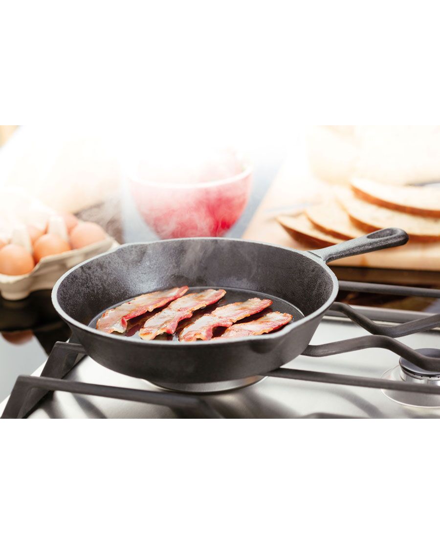 Чугунен тиган Judge 30 см – вечна класика и автентичен вкус във вашата кухня Има причина чугунените съдове да се предават от поколение на поколение. Чугуненият тиган на Judge с впечатляващ диаметър от 30 см е проектиран за тези, които ценят традиционното готвене и искат да постигнат професионални резултати у дома. Със своята здравина и уникална способност да подобрява качествата на храната с времето, този тиган е инвестиция, която ще ви служи вярно цял живот. Ненадминато задържане на топлината и равномерно готвене Чугунът е признат за един от най-добрите материали за готвене благодарение на своята висока топлинна маса и отлична енергийна ефективност. Перфектно запечатване: Веднъж загрят, чугуненият тиган поддържа изключително стабилна и висока температура. Това го прави идеален за запечатване на сочни стекове, приготвяне на хрупкави корички или бързо запържване на зеленчуци. Равномерно разпределение: Топлината се разпределя плавно по цялата повърхност на дъното и стените, предотвратявайки появата на горещи точки и гарантирайки, че храната е сготвена перфектно от всички страни. Естествено незалепващи свойства: Тиганът трябва да се обработи предварително с растително масло. С всяко следващо готвене този естествен защитен слой се подсилва, превръщайки повърхността в отлична алтернатива на синтетичните незалепващи покрития. Максимална гъвкавост – от котлона до фурната Едно от най-големите предимства на чугунения тиган Judge е неговата универсалност. Той премахва границите между различните техники на готвене. Всички видове източници на топлина: Можете да го използвате върху газов, електрически, стъклокерамичен и дори индукционен котлон. Благодарение на масивната си конструкция, той е напълно устойчив на деформации. Безопасен за фурна: Конструкцията от чист чугун позволява тиганът да се поставя директно във фурната. Идеален е за печене на месо, приготвяне на фритати, домашен хляб или дори десерти. Подходящ за открит огън: Здравината на материала го прави чудесен спътник за готвене на открито, върху грил или директно върху жарава по време на къмпинг. Ергономичен дизайн за големи кулинарни задачи При диаметър от 30 см, теглото на съда изисква прецизен дизайн за безопасно и удобно боравене. Judge са помислили за всеки детайл. Помощна дръжка: Предната част на тигана е оборудвана с допълнителна малка дръжка. Тя позволява лесно и стабилно повдигане с две ръце, което е от решаващо значение при пренасяне на пълен тиган от котлона към масата. Двойни улеи за изливане: Интегрираните улеи от двете страни на тигана позволяват лесно отцеждане на излишната мазнина или прецизно сервиране на сосове без подливане. Дълбочина и капацитет: Размерът от 30 см осигурява достатъчно пространство за приготвяне на големи семейни порции, като същевременно по-високите стени намаляват пръскането на мазнина. Технически спецификации на продукта: Марка: Judge Материал: Висококачествен чугун Диаметър: 30 см Съвместимост: Газови, електрически, керамични, халогенни и индукционни котлони Употреба във фурна: Да, до 210°C Поддръжка: Само ръчно миене; подсушавайте веднага след измиване и намазвайте с малко мазнина за предпазване от корозия Изберете здравината и автентичността на чугунения тиган Judge 30 см. Това е съдът, който не само ще промени начина, по който готвите, но и ще с