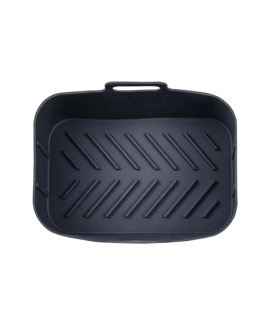 Силиконовата форма за печене е изработена от хранителен силикон, високоустойчив на топлина материал, който издържа до 220 градуса. Той е незалепващ, нетоксичен и не съдържа BPA. Силиконовата форма за печене е подходяща за еър фрайър, мултикукър, фурна, микровълнова, хладилник. Подходяща за печене на пилешки крилца, бургери, ребра, пържола, риба, зеленчуци. Силиконовата форма е проектирана с дръжки от двете страни за лесно изваждане.Тя е толкова мека и гъвкава, че просто можете да я обърнете наопаки и да измиете с топла вода. Може да се мие безопасно в съдомиялна машина. Формата е екологична, може се използва многократно и така де да се спестят хиляди хартии за печене.