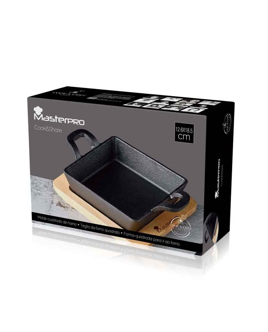 Мини тава с подложка Masterpro Cook&Share 12.6x18.5 см чугун квадратна