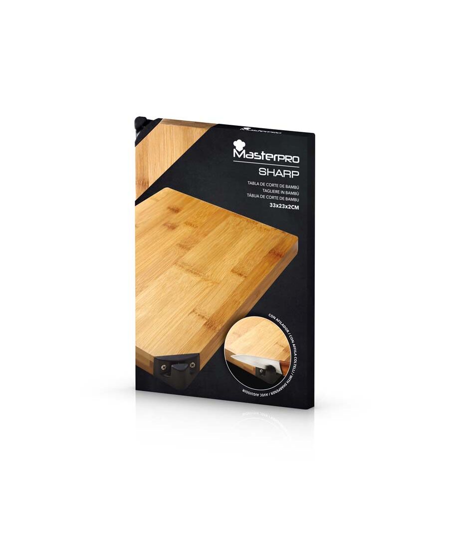 Бамбукова дъска за рязане Masterpro Sharp 33х23 см с вградено точило