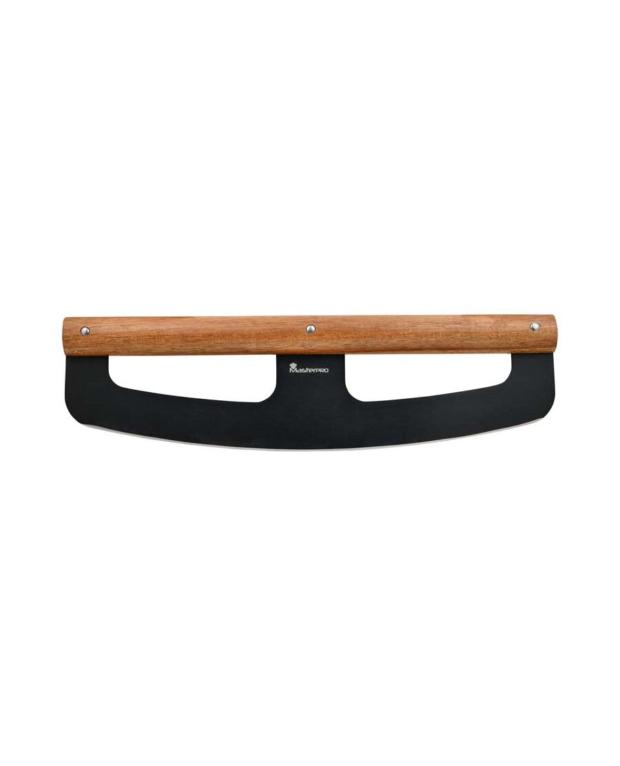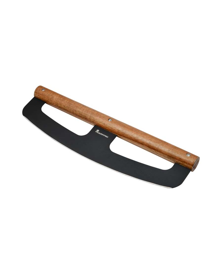Нож за Пица MASTERPRO Foodies (34.8x11.5 см) – незалепващо покритие и дървена дръжка Този специализиран нож за пица от колекцията MasterPRO Foodies е проектиран за лесно и прецизно рязане на пица, като запазва непокътнати гарнитурите и покритието ѝ. Идеален за любители на кулинарията, които ценят както функционалността, така и естетиката в кухнята. Основни характеристики и предимства Колекция: Foodies – линия на MasterPRO, насочена към хора, които обичат да експериментират и да се наслаждават на процеса на готвене и хранене. Дизайн: Ножът е с извит дизайн тип полумесец/люлка с една дръжка, което позволява лесно рязане чрез люлеещо движение. Този метод осигурява чист срез без да влачи пълнежа. Размери: 34.8 x 11.5 см – голям размер, идеален за рязане на пици с всякакъв диаметър, включително големи домашни пици. Острие: Материал: Висококачествена неръждаема стомана. Покритие: Черно незалепващо покритие – предотвратява залепването на сиренето и гарнитурите по острието, осигурявайки чисто и лесно рязане. Дръжка: Ергономична дръжка от естествено дърво акация Дървената дръжка осигурява сигурен и удобен захват по време на рязане. Приложение: Подходящ за пица, но може да се използва и за бързо нарязване на билки, подправки, зеленчуци и други, чрез люлеещо движение върху дъска за рязане. Поддръжка: Препоръчва се ръчно миене за запазване на дървената дръжка и незалепващото покритие. Защо да изберете MasterPRO Foodies Нож за Пица? Специализираният дизайн на ножа "полумесец/люлка" в комбинация с незалепващото покритие прави рязането на пица изключително бързо и лесно. Елегантната черна повърхност и дървената дръжка добавят стил и професионализъм към всяка кухня. Нарежете перфектните парчета пица със стил и прецизност!