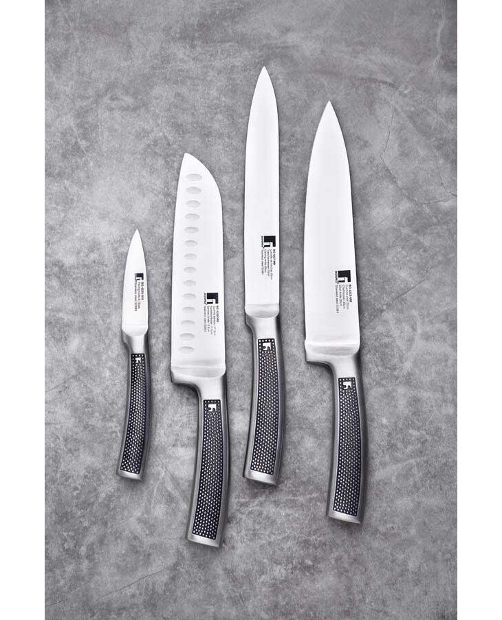 Ако искате да се сдобиете с професионален нож за перфектни разрези, ние имаме решението! Ножът на главния готвач Bergner Harley има 20-сантиметрово метално острие с остър връх, което е изключително издръжливо. С него можете лесно и бързо да нарязвате вашите съставки от зеленчуци и плодове до месо и пиле. Предимства на ножовете Bergner Harley:- Защитен от пръстови отпечатъци и залепване на храна сатенен финиш - Релефни шипове създаващи противоплъзгаща се повърхност повърхност за сигурен захват- Предпазител за защита на пръстите от порязване- Куха дръжка с регулиран баланс на теглото за комфорт и стабилност