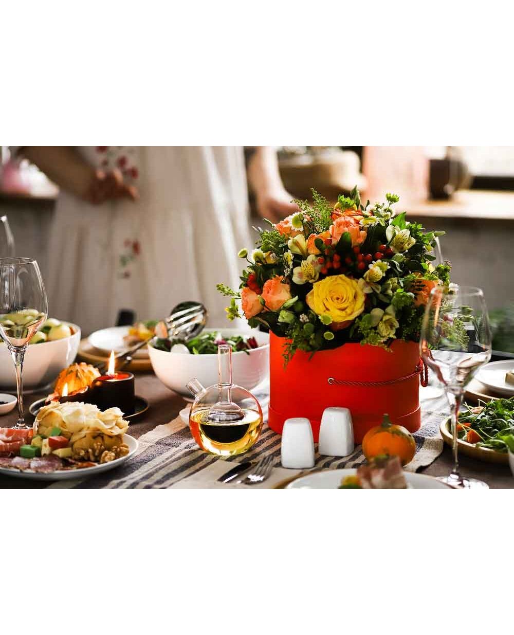 Симпатична и ефектна бутилка за овкусяване на салати състояща се от две части.Обемът на голямата част е 300 мл и е предназначен за олио или зехтин, обемът на малката част е 60 мл е предвиден за оцет.Комбинираната бутилка с две капачки ще заеме достойното си място на вашата маса при сервиране.