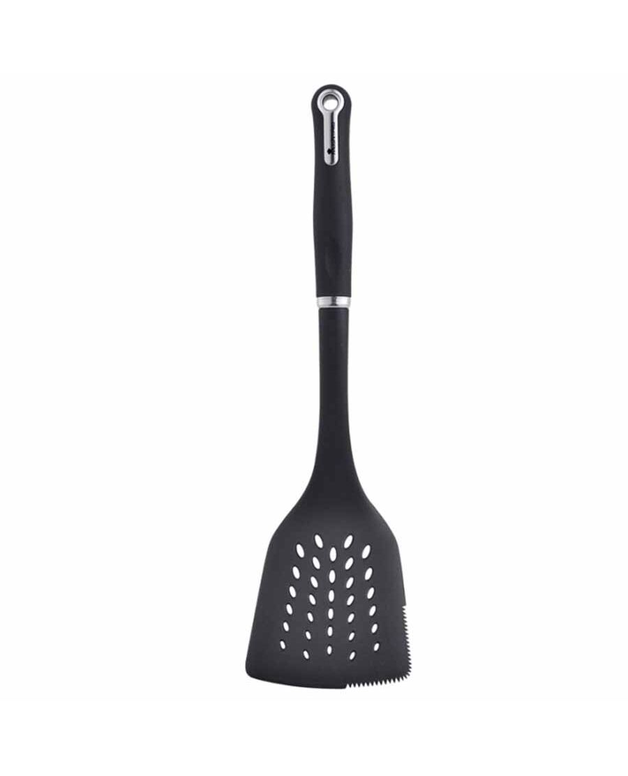 - Изработен от олекотен твърд найлон- Не надрасква съдовете с незалепващо покритие- Спестява място за съхранение- Спестява време за търсене на правилния прибор