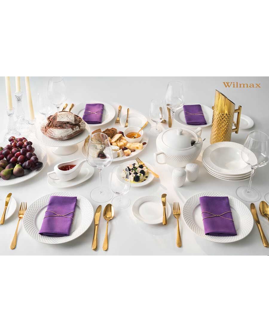 Нож за масло WILMAX Diamond / Julia (17 см) – WL-999247/1B, златен цвят Внесете луксозен акцент на вашата маса за закуска или брънч с този елегантен нож за масло WILMAX WL-999247/1B. той е част от колекцията Diamond / Julia и се отличава със стилен златист цвят. Основни характеристики и предимства Колекция: Diamond / Julia – отличава се с изискан и модерен дизайн. Материал: ножът е изработен от висококачествена неръждаема стомана, гарантираща дълготрайност и корозоустойчивост. Цвят: златист – покритието придава на прибора луксозен и празничен вид. Дължина: 17 см – идеален размер за удобно разнасяне на масло, мармалади, конфитюри или меки сирена. Функция: специално проектиран за лесно загребване и разнасяне на масло. широкият, леко заоблен връх го прави идеален за сервиране на всякакви кремообразни намазки. Опаковка: ножът се предлага в блистерна опаковка (blister pack). Защо да изберете този златист нож за масло? Ножът WILMAX WL-999247/1B е перфектният избор, ако искате да добавите блясък и цвят към вашата колекция прибори. той съчетава практичност с висококачествен материал и луксозен завършек. Сервирайте с елегантност и стил със златните прибори от WILMAX Diamond!
