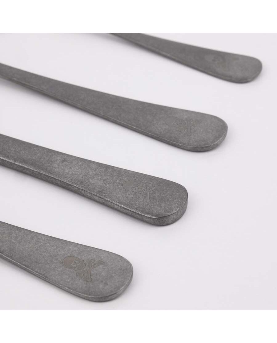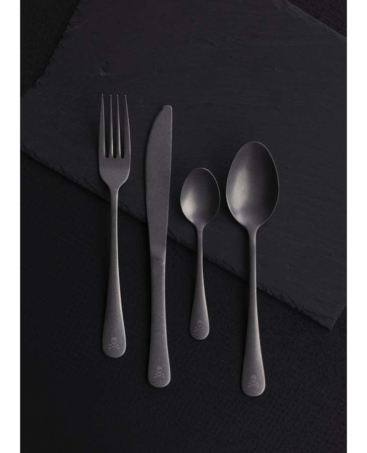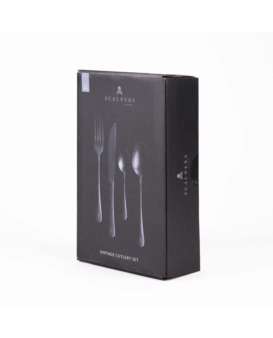 Прибори за хранене Scalpers Home с черепи във винтидж стил. Комплектът съдържа всички основни прибори за хранене за четирима души, т.е. лъжица, вилица, нож и десертна лъжица за всеки човек. В Scalpers знаят, че старото има специално, различно и уникално докосване, уважават и обичат това. Ето защо създават прибори за хранене в този стил, така че когато седнете на масата, да използвате прибори с индивидуалност.