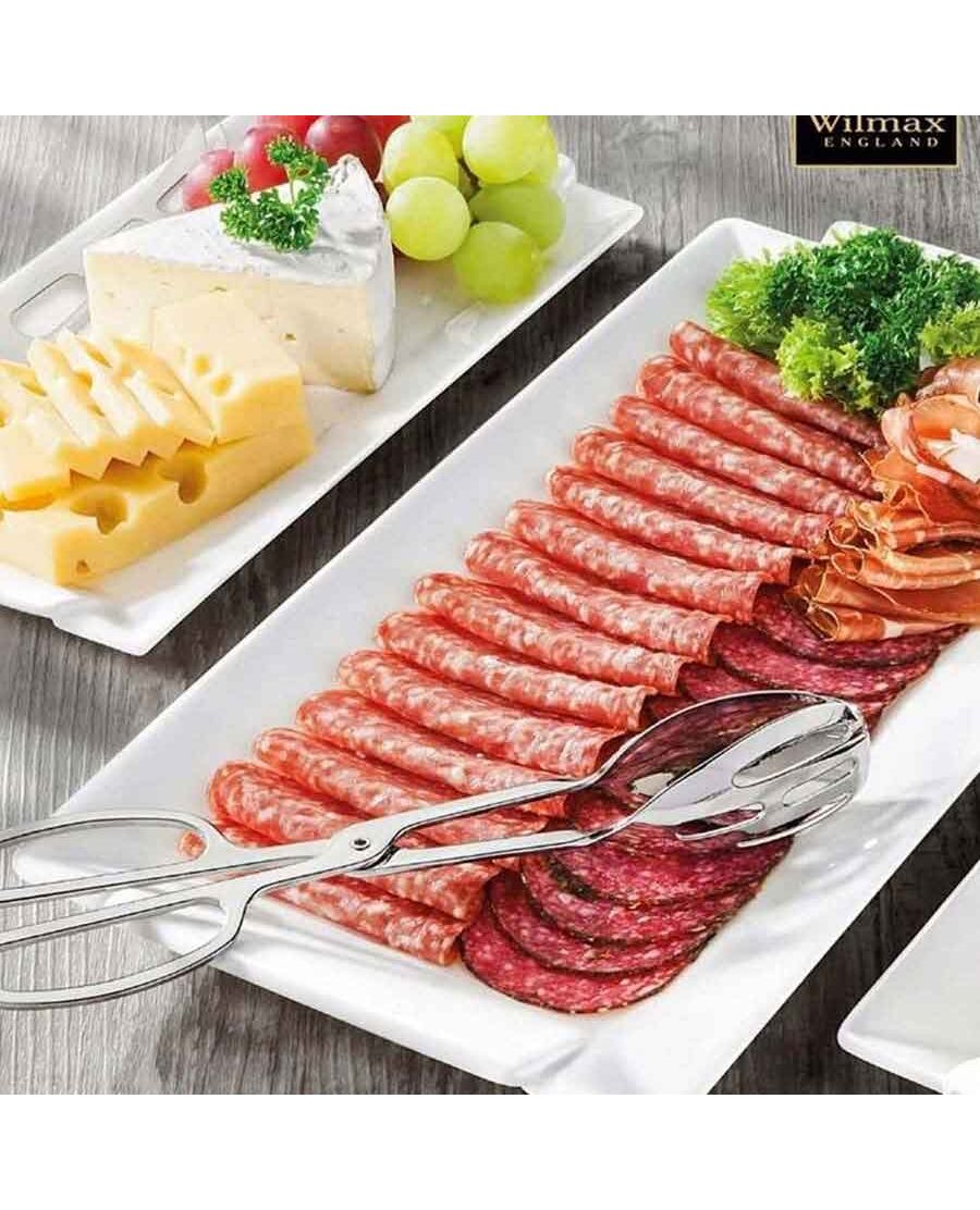 Материал: Щипките за сервиране Wilmax са изработени от висококачествена неръждаема стомана, което осигурява дълготрайност и устойчивост на корозия. Дизайн: С елегантен и модерен вид, щипките притежават удобни дръжки, които осигуряват добро сцепление при сервиране. Те имат две различни форми на края - едната е с дупки, което я прави подходяща за сервиране на различни ястия. Размер: С дължина от 26 см, те са идеални за сервиране на салати, паста, зеленчуци и други ястия на масата. Удобство: Леката конструкция и ергономичният дизайн правят тези щипки удобни за използване при всяко сервиране. Лесни за почистване и подходящи за съдомиялна машина. Приложение: Идеални за домашна употреба, както и за професионални кухни, щипките за сервиране Wilmax добавят стил и функционалност към всяка трапеза. Тези щипки са перфектният аксесоар за всяко хранене, осигурявайки удобство и елегантност на вашата маса.