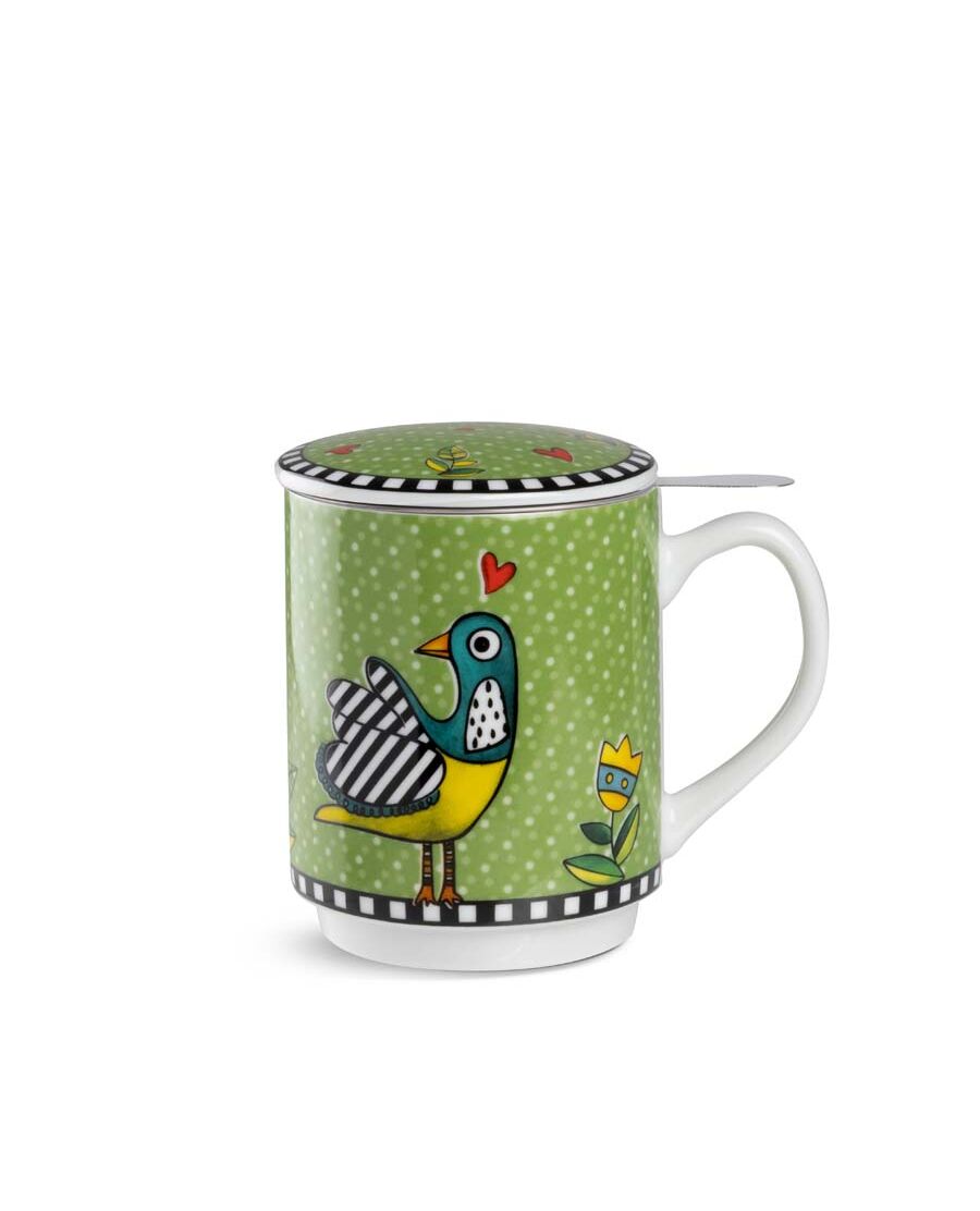Чаша за чай с инфузер Egan Cocorico 350 мл зелена порцелан