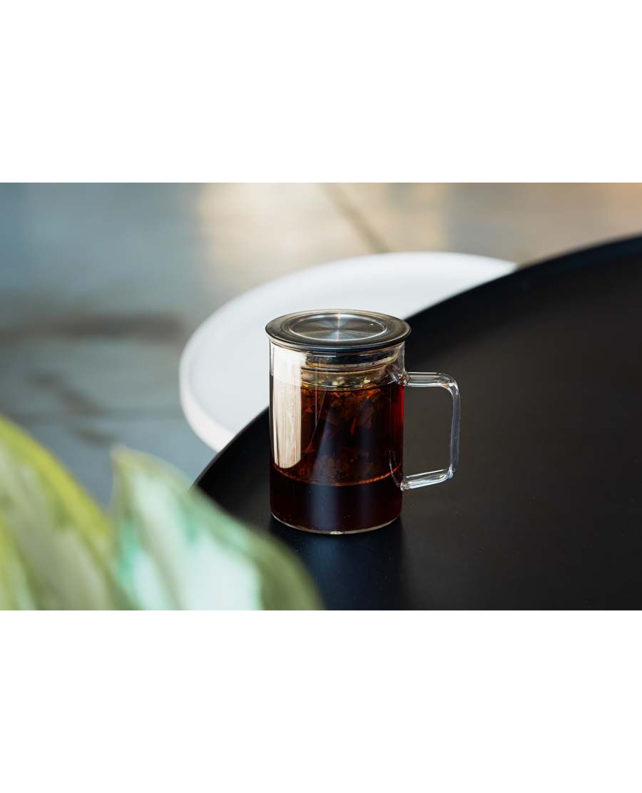 Функционална чаша с инфузер от серията Diva на Vialli Design ще ви позволи да се насладите на любимия си чай, и то не само през зимните вечери. Продуктът е много лесен за използване, просто изсипете чаени листа в контейнера и след няколко минути можете да се насладите на перфектно запарен чай. Прозрачните стъклени стени дават възможност да се проследи процесът на запарване и да се контролира интензитета на чая.Чашата е изработена от боросиликатно стъкло, което е силно устойчиво на температурни промени, също и на потъмняване дори при интензивна употреба.Ергономичната форма на чашата и удобната дръжка гарантират, че тя стои сигурно в ръката ви и няма опасност от изплъзване.Чашата има специално оформен капак от неръждаема стомана и пластмаса, който обърнат наобратно може да се използва и като поставка, върху която да се постави инфузера.