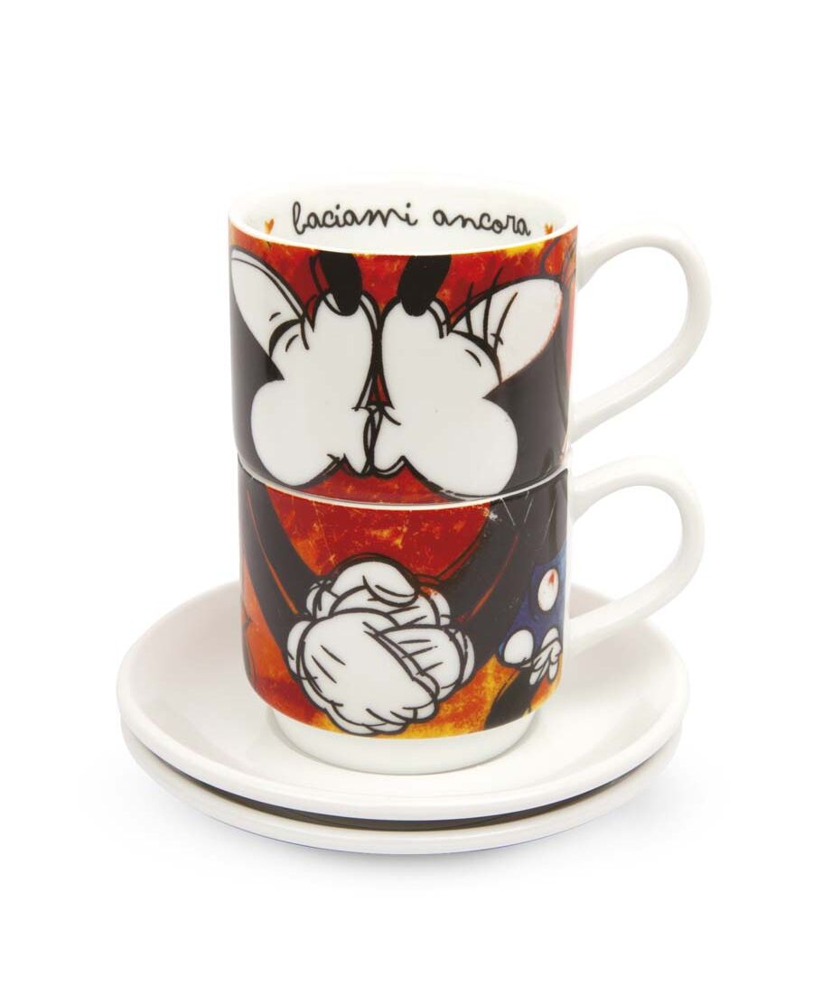 Комплектът Disney Love Sweet Love на Egan е очарователен комплект, съставен от две подреждащи се една върху друга чаши за кафе с чинийки, предназначени да добавят нотка магия към сутрешното кафе. Чашите с вместимост 80 мл са изработени от висококачествен порцелан, осигуряващ устойчивост и удобството на почистване в съдомиялна машина. Перфектен е за любителите на Мики Маус и всеки, който иска да създаде весела атмосфера на масата си. Идеален подарък, който ще ви помогне да превърнете всеки момент от деня в специално изживяване.