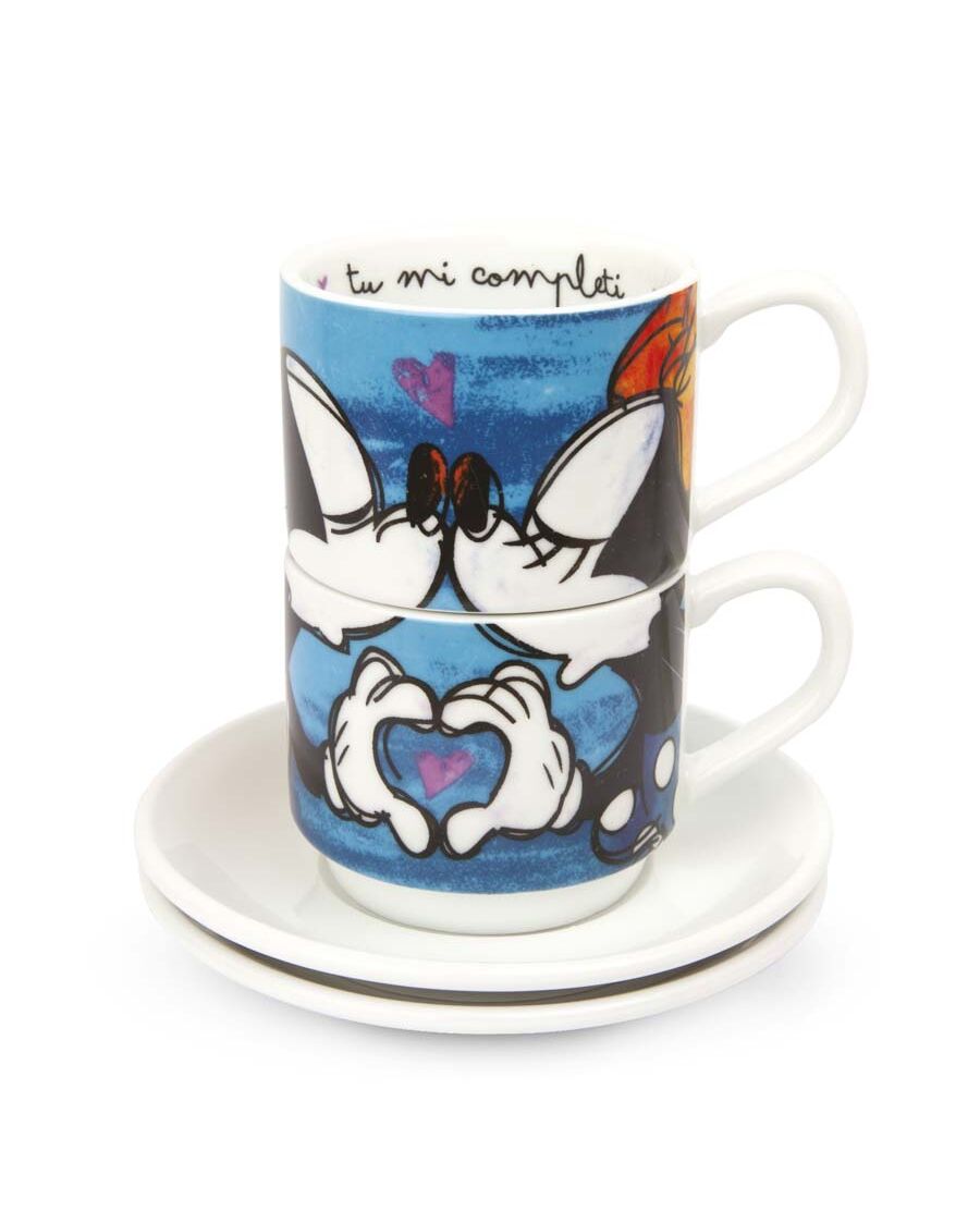 Комплект 2 чаши за кафе Disney Love Sweet Love с чинийки сини