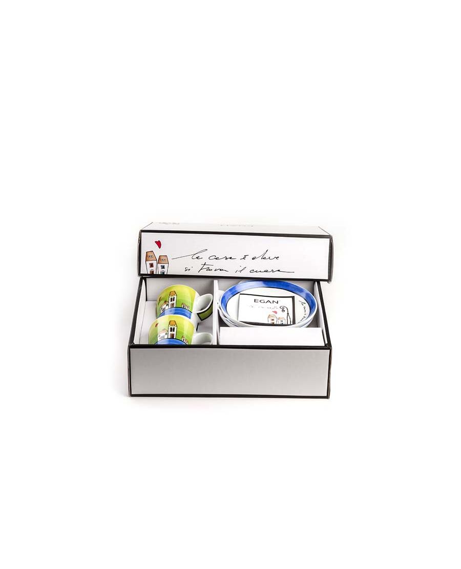 Събуждайте се с енергия и жизненост благодарение на комплекта 2 чаши за кафе Le Casette на EGAN. Тези чаши са украсени с очарователния мотив Le Casette, който напомня за топлата атмосфера на италианските села. Всяка ръчно изрисувана чаша е малко произведение на изкуството, което обещава да превърне ежедневното ви кафе в момент на чисто удоволствие.