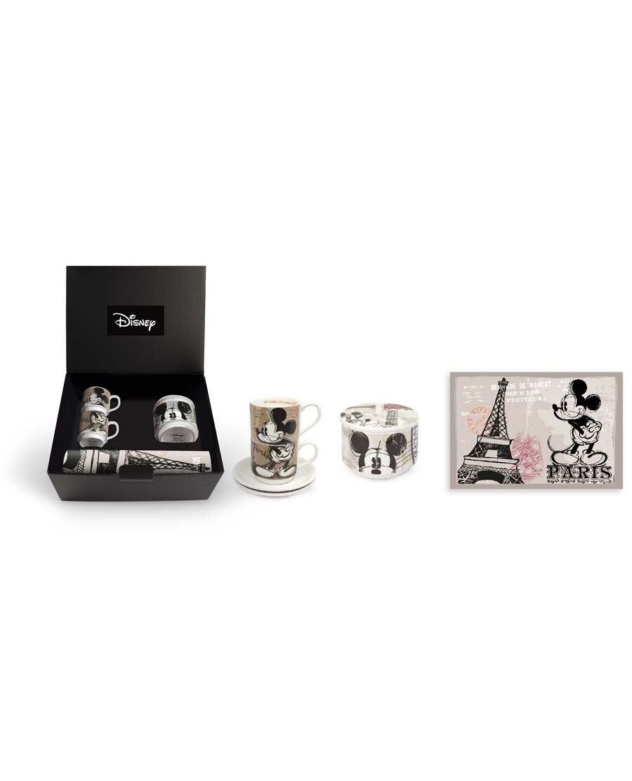 Комплектът подложка, захарница и 2 чаши от колекцията In The City на Egan е посветен на любимия анимационен герой на Disney - Mickey Mouse. Изработени от висококачествен порцелан, продуктите са украсени с дигитален печат на Mickey Mouse в Париж. Печатът е с високо качество и гарантира дълготрайност на картинката. Невероятен шанс да добавите настроение във вашата кухня и да направите времето за кафе толкова по-приятно.