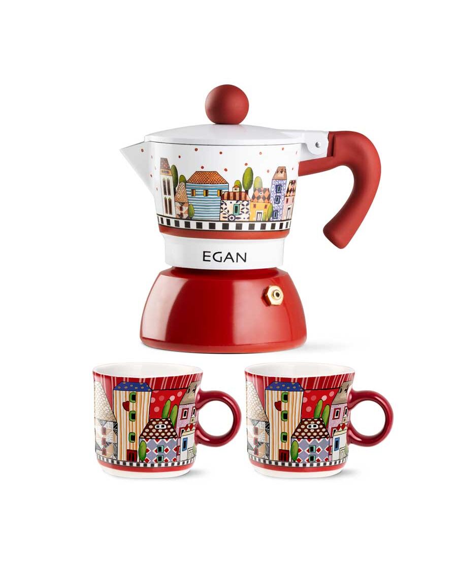 Комплект кафеварка и 2 чаши за кафе Egan Paese Mio Moka червена