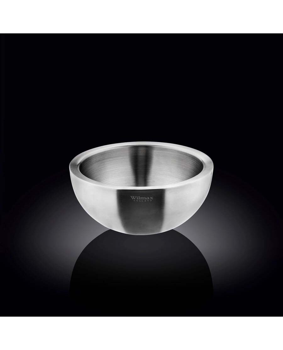 Двустенната купа Wilmax Barware с диаметър 16 см и капацитет 500 мл е елегантен и практичен съд, идеален за сервиране на салати, плодове или различни закуски. Изработена от висококачествена неръждаема стомана, тя съчетава стил и устойчивост. Основни характеристики: Двустенен дизайн: Осигурява отлична термоизолация, което е полезно за запазване на температурата на храната, независимо дали е гореща или студена. Капацитет: Със своите 500 мл, купата е подходяща за сервиране на индивидуални порции сладолед, плодови салати, студени и топли супи и други. Стилен вид: Модерният дизайн допринася за естетиката на масата и може да се комбинира с различни декорации. Лесна за почистване: Неръждаемата стомана е не само устойчива, но и лесна за поддръжка, което я прави идеален избор за ежедневна употреба. Тази купа е перфектен акцент за всяка кухня или трапезария и е отличен избор както за лична употреба, така и за подарък.