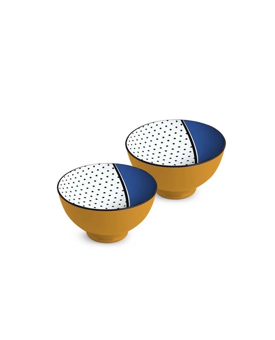 Комплектът от 2 купички Egan Wara с диаметър 11 см е изработен от керамика и е в стилен оранжев цвят. Външната част на купичките е с ярък оранжев оттенък, а вътрешността им е изключително привлекателна, комбинираща синьо и бяло, украсена с черни точки. Този комплект е идеален за сервиране на предястия, закуски или сладки изкушения и със сигурност ще внесе красив акцент в интериора на вашата кухня или маса. Компактният размер на купичките ги прави много удобни за употреба както у дома, така и при специални поводи. Керамиката осигурява здравина и лесна поддръжка, а отличителният дизайн на Egan Wara добавя модерен и игрив щрих. Това е отличен избор за всеки, който търси комбинация от естетика и практичност.