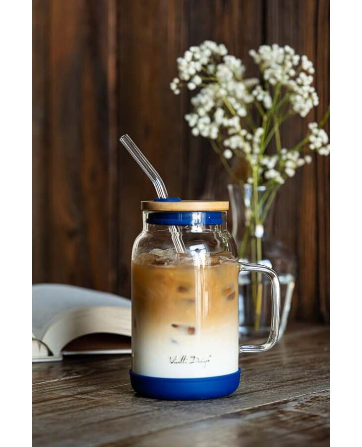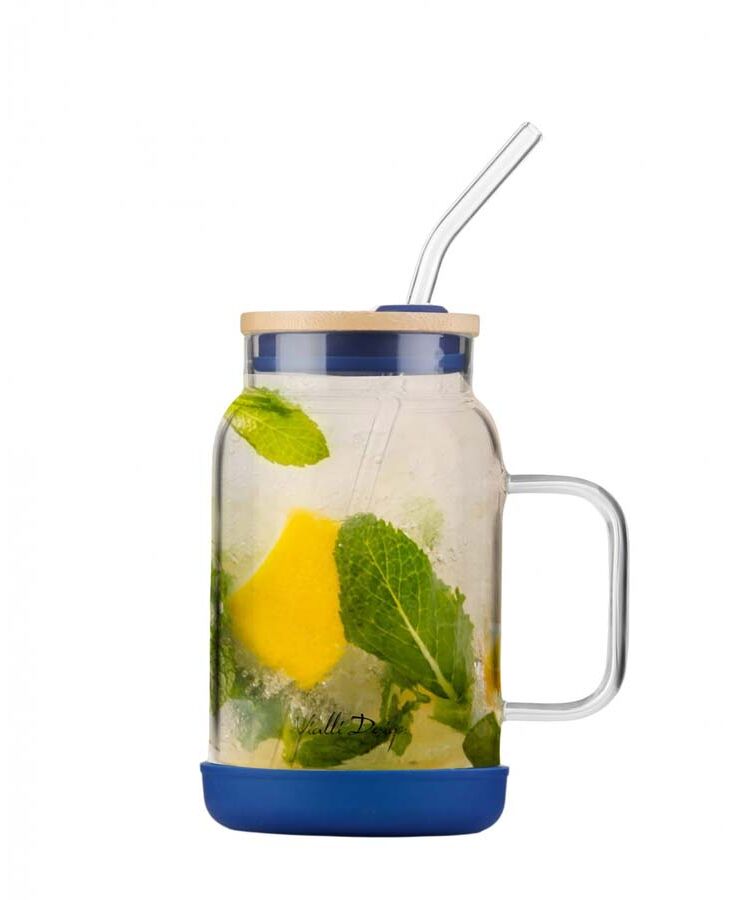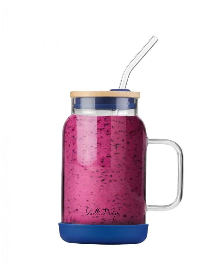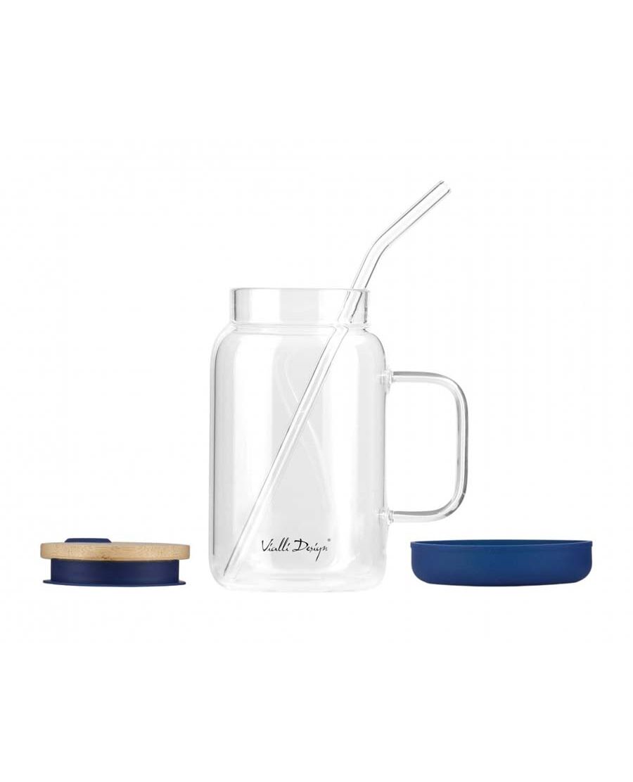 Буркан със сламка Vialli Design Fuori 600 мл бамбуков капак морско син