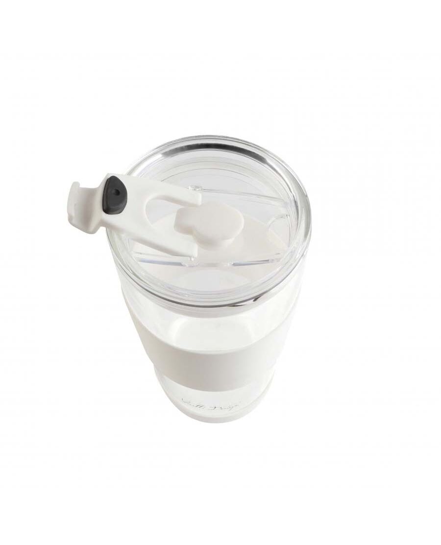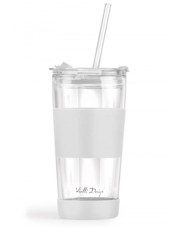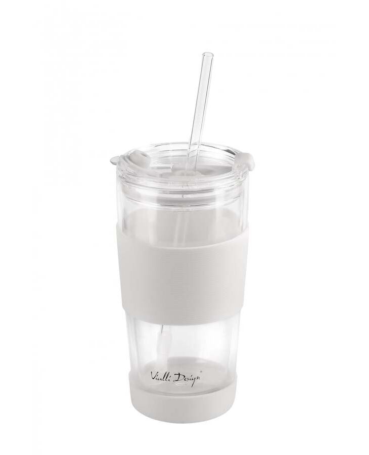 Двустенна чаша със сламка Vialli Design Fuori 600 мл с капак бяла