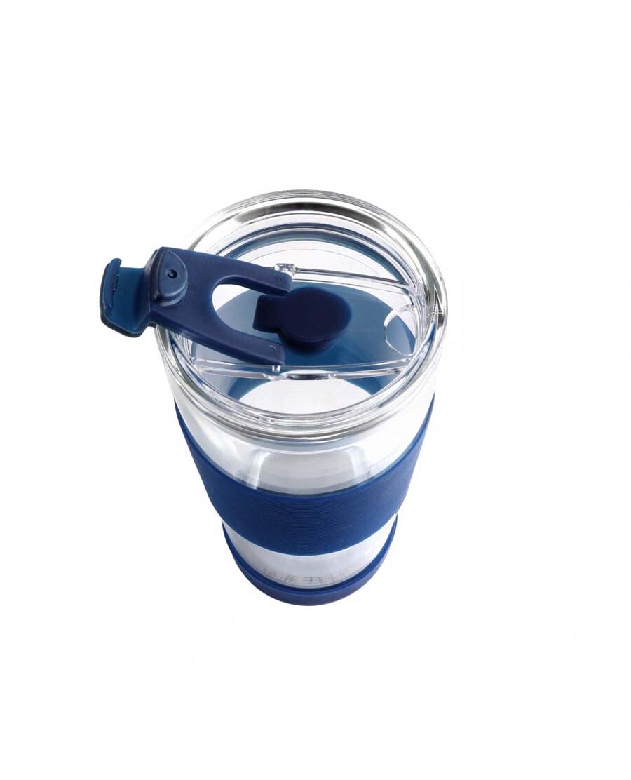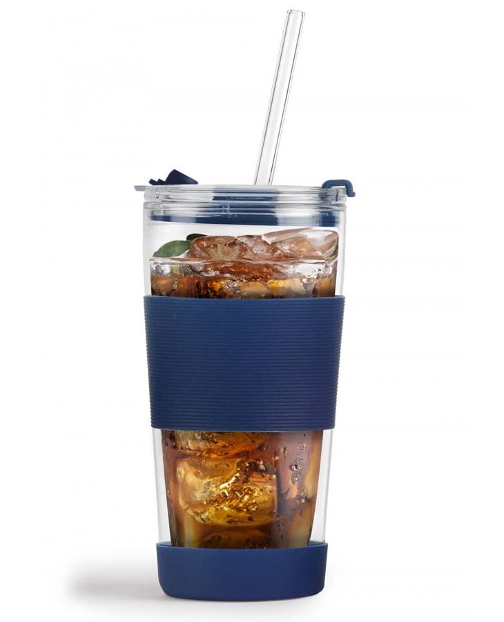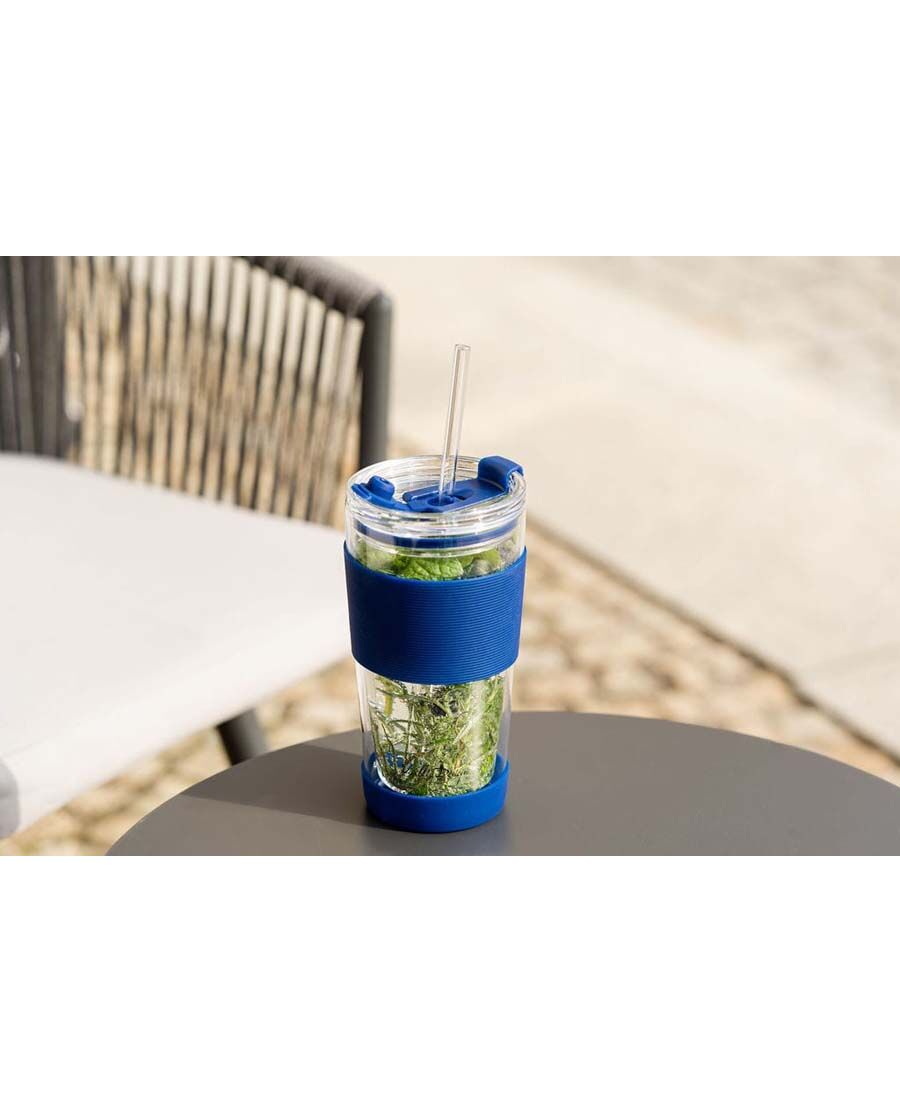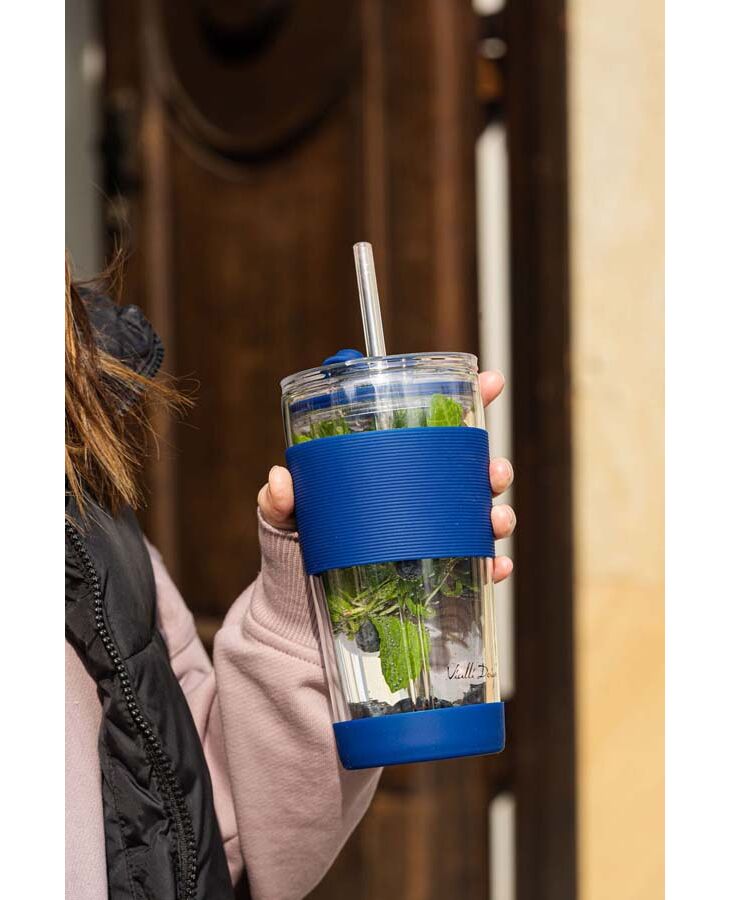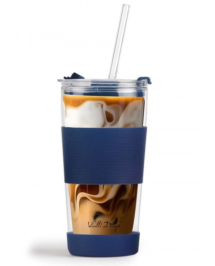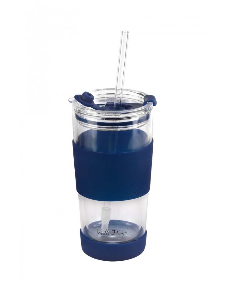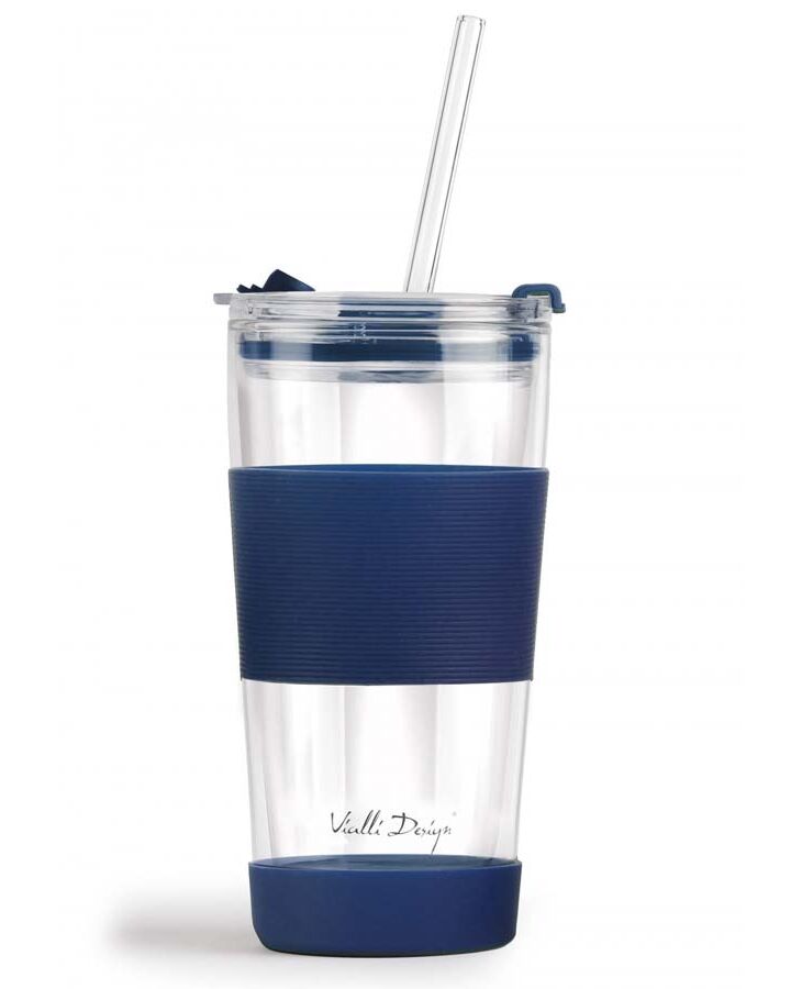 Двустенна чаша със сламка Vialli Design Fuori 600 мл с капак синя