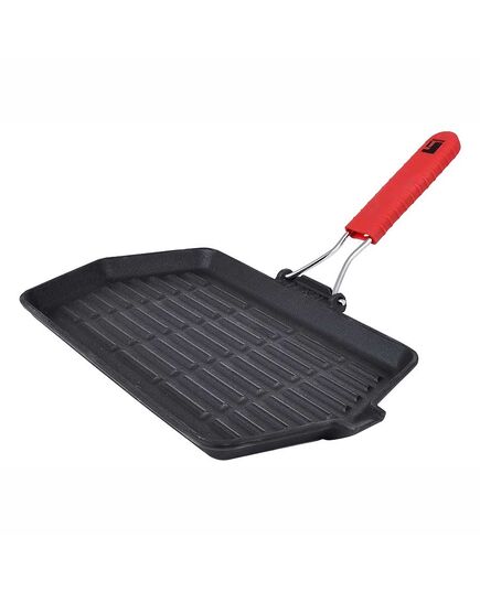 Това е идеалният кухненска уред, за приготвяне на месо, риба, зеленчуци на грил, съхранявайки полезните им качества и придавайки им невероятен вкус и апетитен вид. Произведен от чугун, материал, известен със способността си да поддържа висока температура за дълъг период от време. Подготвени и съхранявани по правилен начин, чугунените съдове са много приятни и лесни за употреба с естествени незалепващи свойства. Има размери 34.3x20. см, подходящ за приготвяне на голямо количество храна. Подходящ за индукционни котлони. Има подвижна дръжка с помощта, на която спестявате пространство при съхранение и осигурява здраво и стабилно захващане.