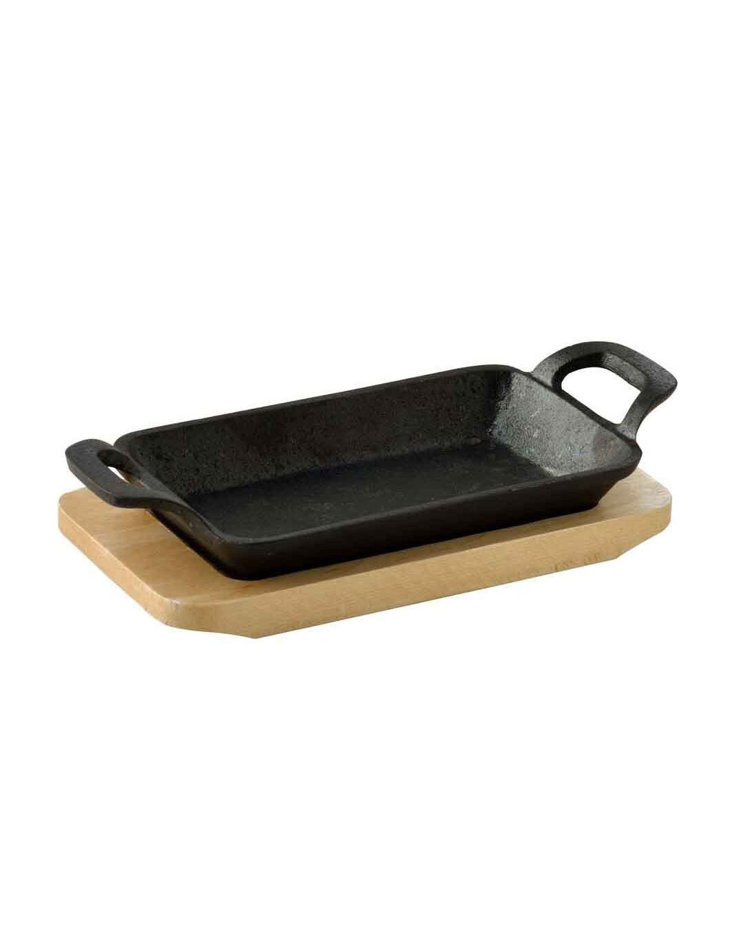 Чугунена правоъгълна мини тава с дръжки и дървена подложка. Колекцията Cook & Share се състои от уникални миниатюрни кухненски съдове, идеални за готвене и сервиране на отделни порции. Никога не е било толкова лесно с едно пускане на фурната да комбинирате много различни рецепти в малки съдове, за да забавлявате гостите си. Направени от издръжлив материал, лесни за употреба и почистване.Подходящи за: фурна и всички видове котлони, включително индукционни.