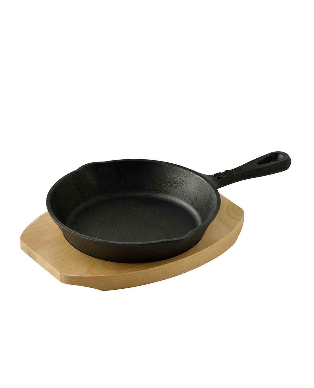 Чугунен мини тиган с дървена подложка. Колекцията Cook & Share се състои от уникални миниатюрни кухненски съдове, идеални за готвене и сервиране на отделни порции. Никога не е било толкова лесно с едно пускане на фурната да комбинирате много различни рецепти в малки съдове, за да забавлявате гостите си. Направени от издръжлив материал, лесни за употреба и почистване.Подходящи за: фурна и всички видове котлони, включително индукционни.