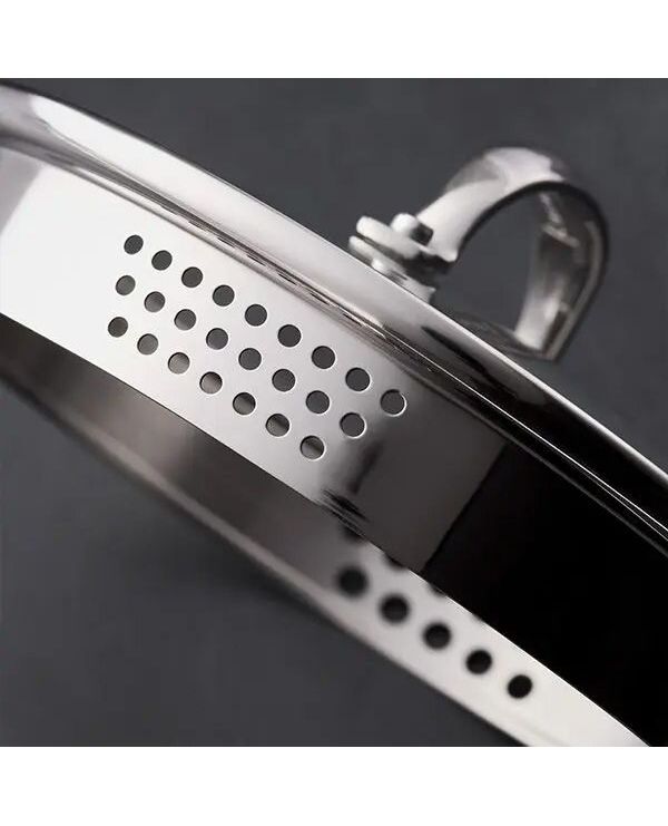 Капак с вградени отвори за отцеждане – два размера перфорации, подходящи както за паста, така и за ориз или фини продукти.