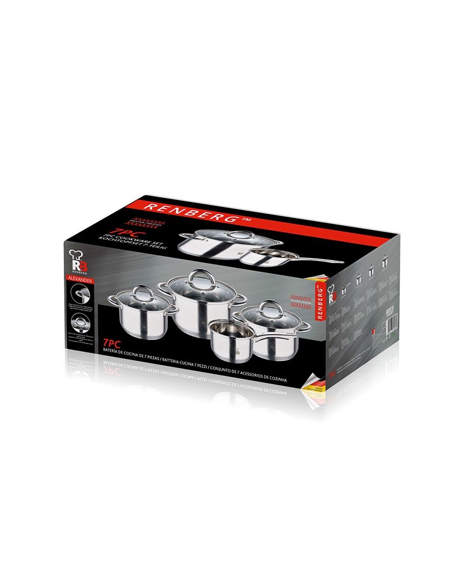 Комплект тенджери 7 части Серията е изработена от неръждаема стомана,подходяща за всички видове котлони и съдомиалн машина. За по-голямо удобство има мерителна скала, дизайнът е съчетание между матова и гланцова повърхност. Комплектът съдържа: Тенджера със стъклен капак Ø 24 x 14.5 см. 6.2 л. Тенджера със стъклен капак Ø 20 x 12.5 см. 3.6 л. Тенджера със стъклен капак Ø 18 x 11.5 см. 3.6 л. Касерола без капак Ø 16 х 10.5 см. 1.9 л.