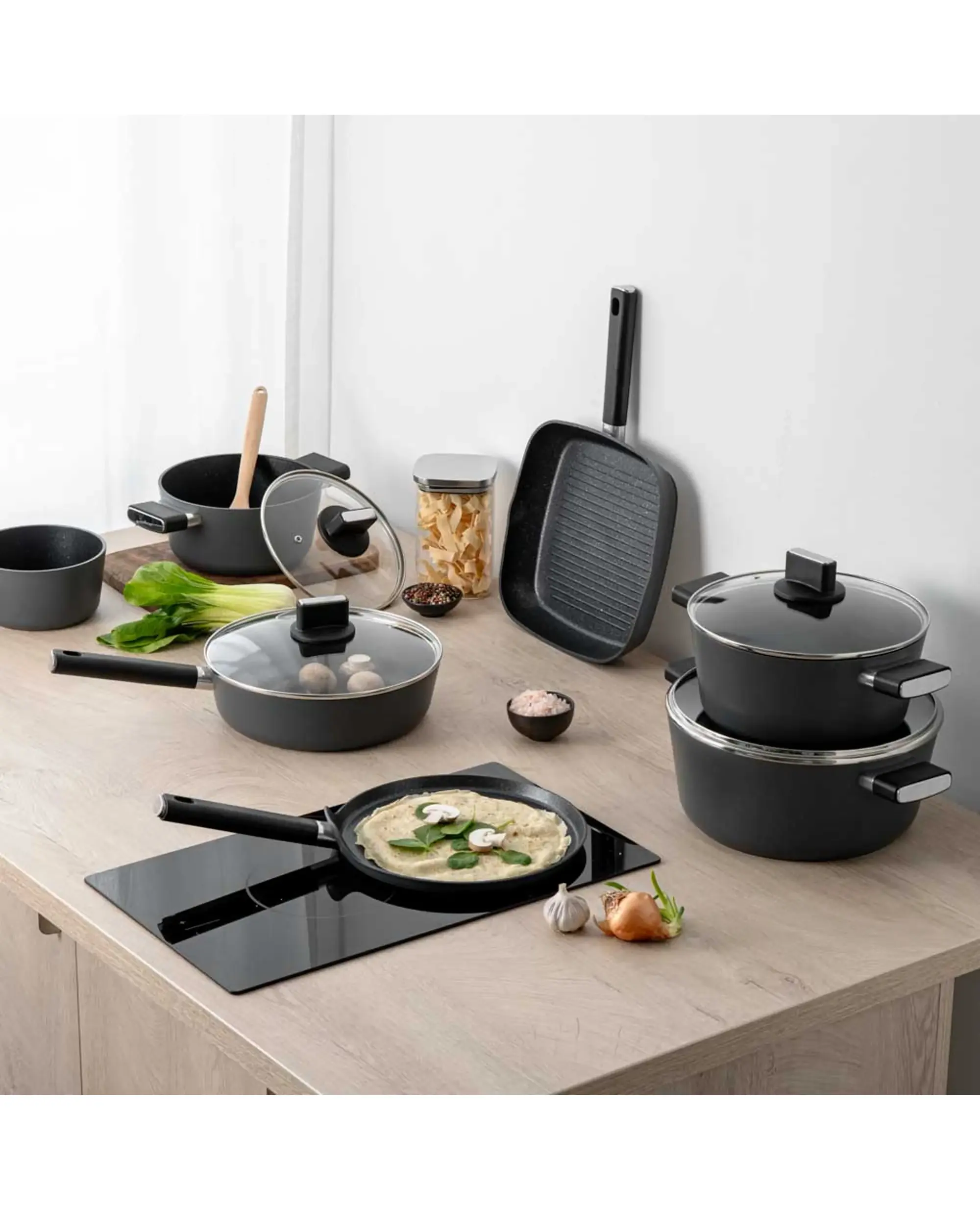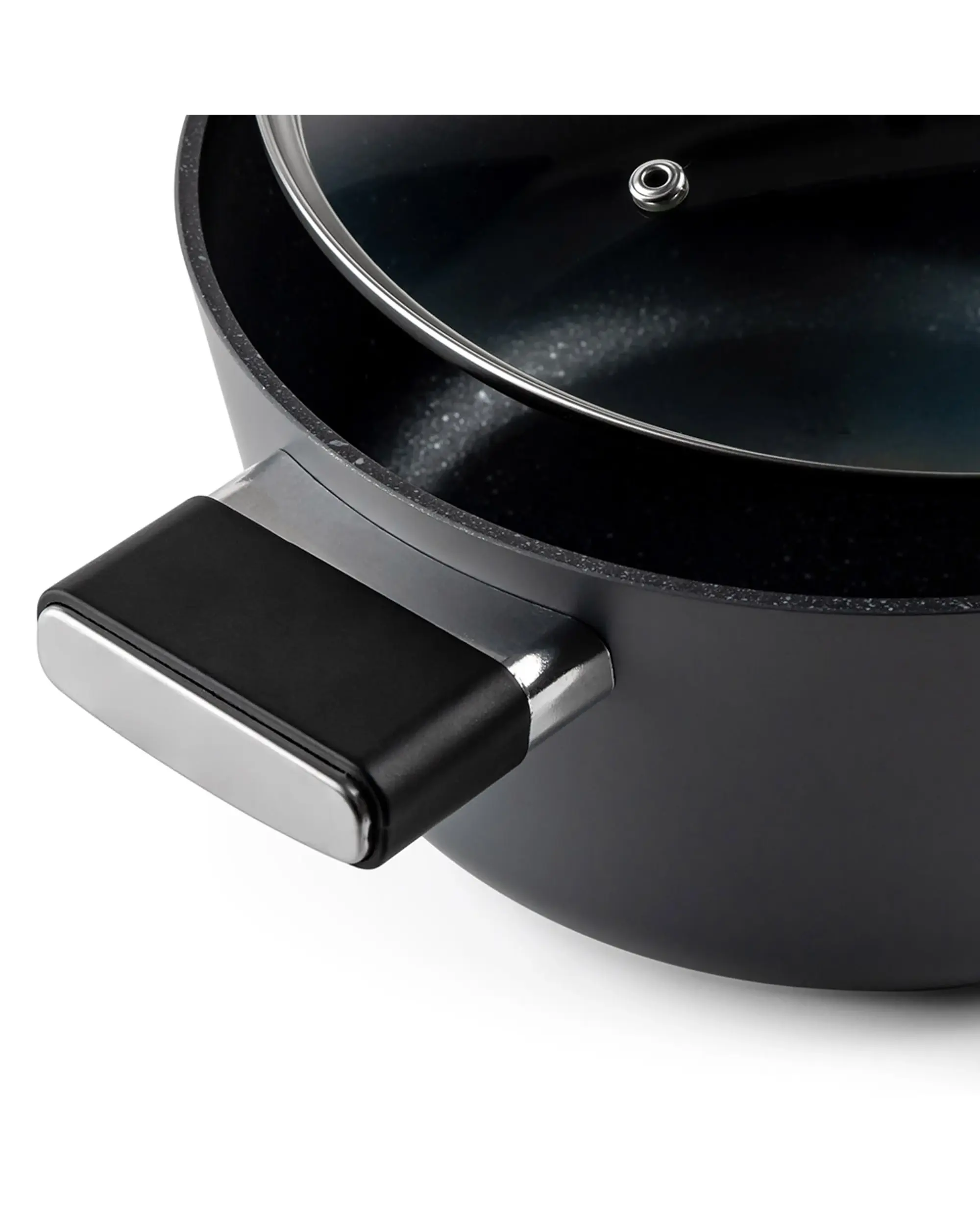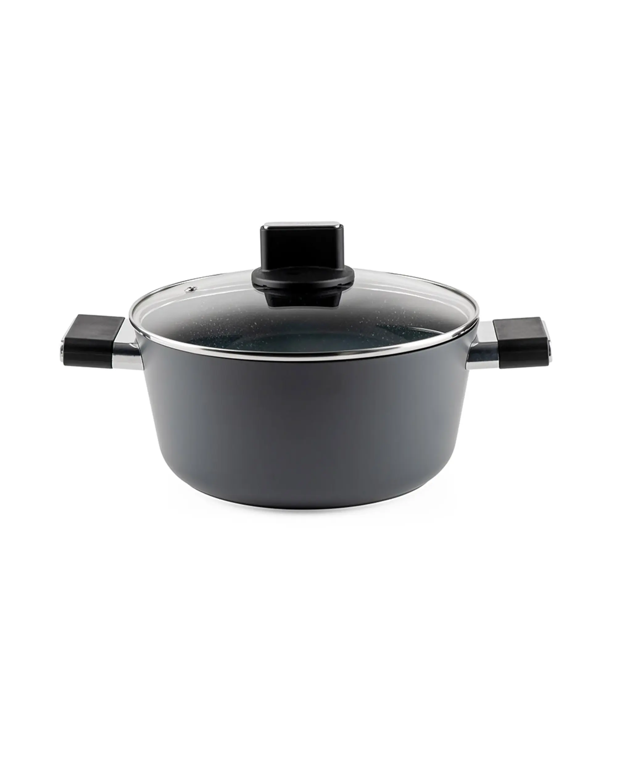 Благодарение на устойчивото незалепващо покритие с мраморен ефект, храната не залепва и можете да готвите с минимално количество мазнина, което прави приготвянето на храната по-здравословно. Тенджерата е съвместима с всички видове котлони, включително индукционни, а след употреба може лесно да се почисти, дори и в съдомиялна машина.