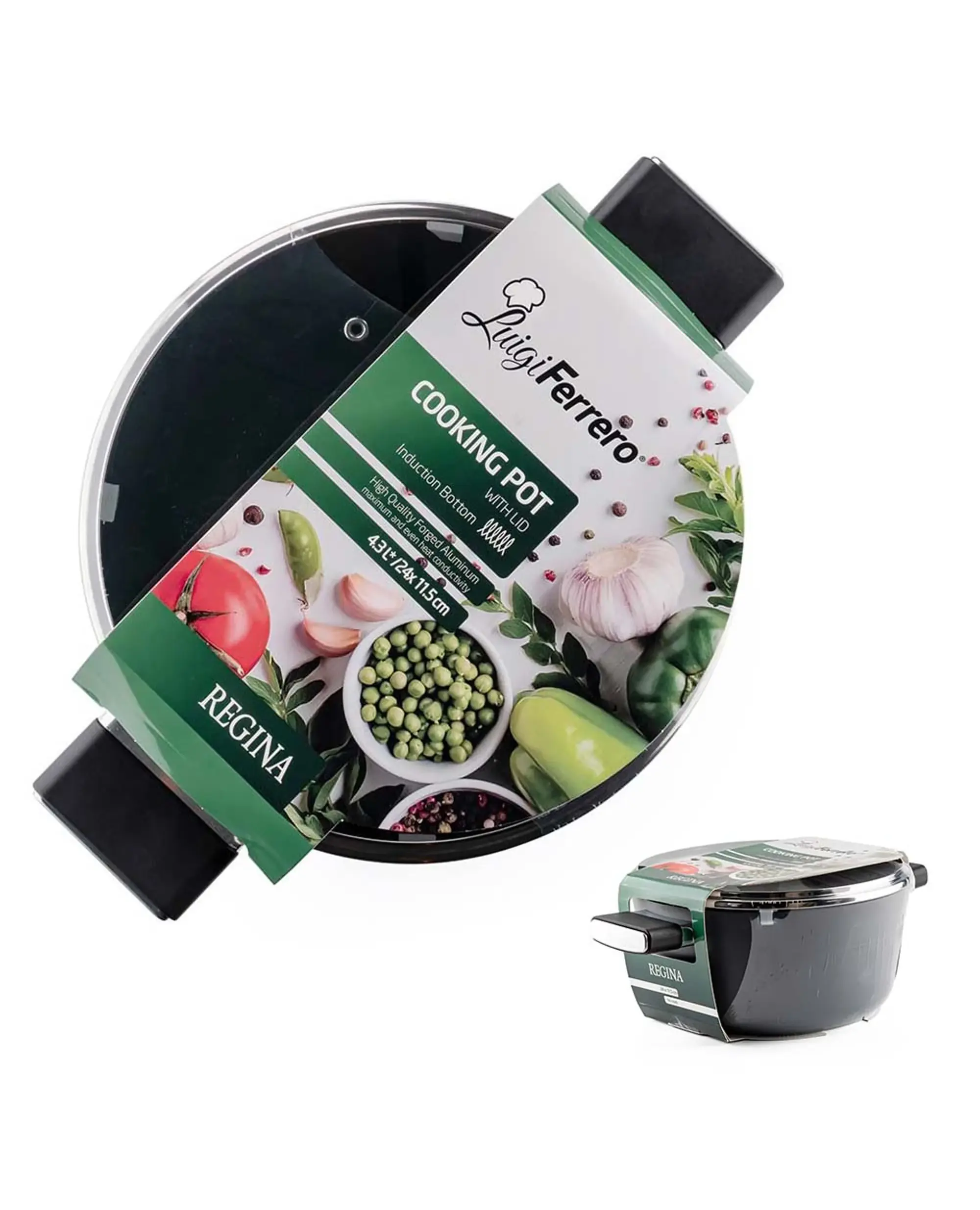 Тенджерата Luigi Ferrero Regina 24 см е създадена за удобно, здравословно и ефективно готвене във всяка кухня. Изработена от висококачествен кован алуминий, тя осигурява бързо и равномерно нагряване, което спомага за перфектно приготвяне на различни ястия – от супи и сосове до основни ястия за цялото семейство.