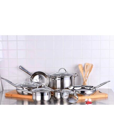 Високата топлопроводимост и равномерно нагряване на съдовете ще ви спести разход на енергия и време. Лесно се почистват и са идеални за многофункционално ползване. Особено са подходящи за варене и задушаване. Диаметърът на дъното е 21.5 см.