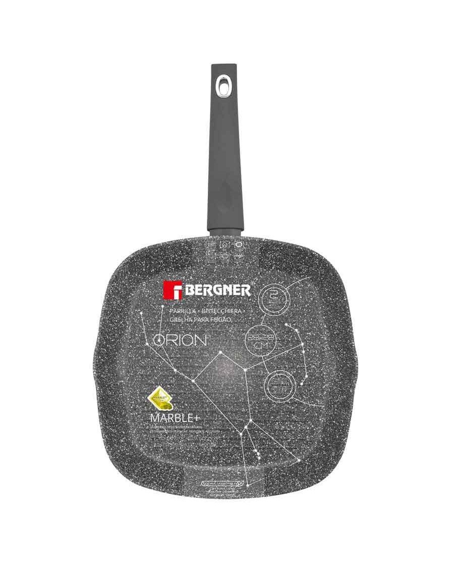 Продуктите от серия Orion се открояват с издръжливо мраморно покритие Marble+ с отличен, закален, незалепващ слой. Вътрешното и външно покритие са идентични, което позволява запазване на доброто състояние на съда за по - дълго време.Ергономичната ръкохватка е изработена от мек материал за стабилно захващане и предпазване от топлина.