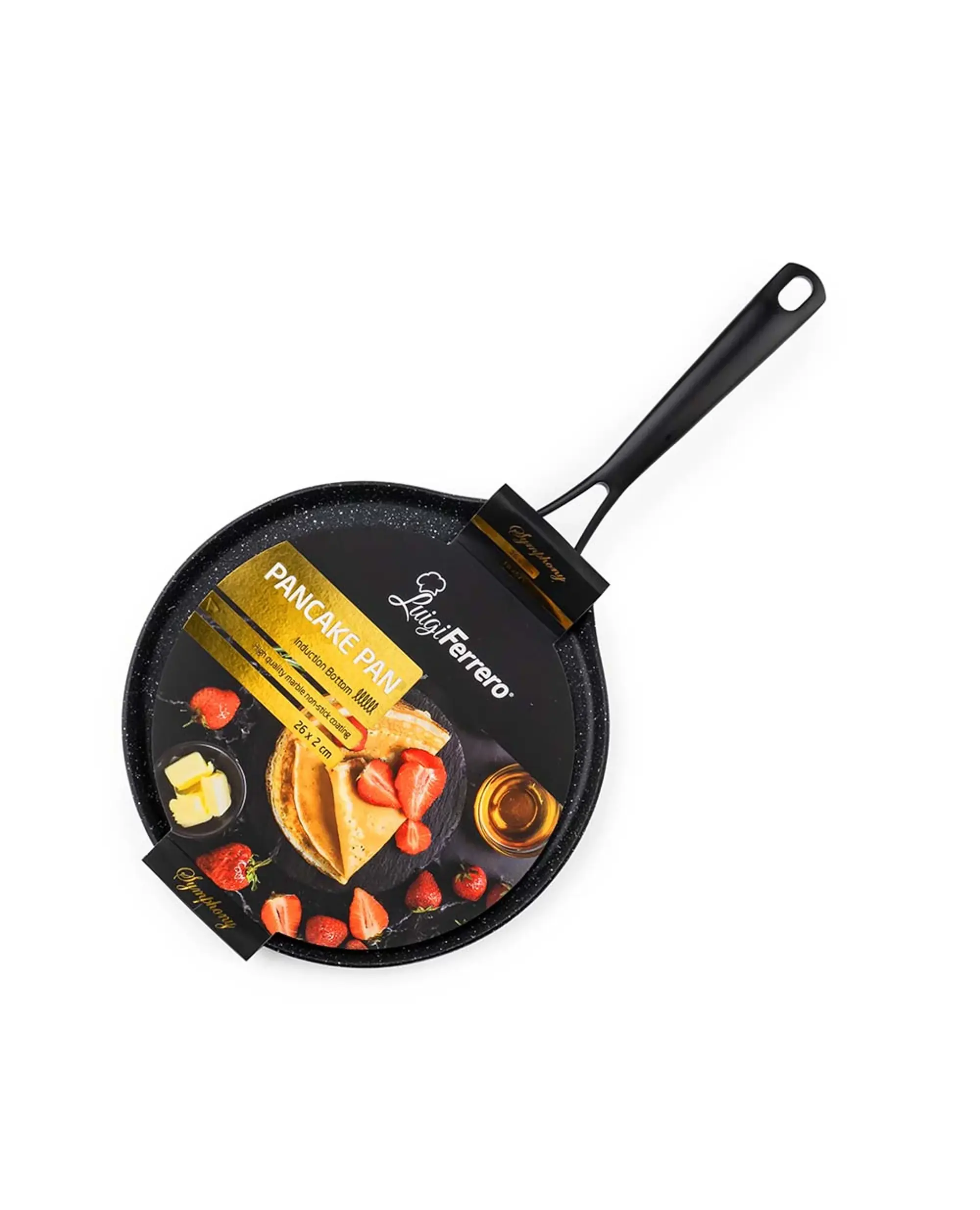 Тиганът за палачинки Luigi Ferrero Symphony 26x2 см е създаден за любителите на перфектно изпечени палачинки, омлети и деликатни ястия. Изработен от висококачествен кован алуминий, той осигурява бързо и равномерно нагряванена повърхността, като гарантира отлични кулинарни резултати всеки път.