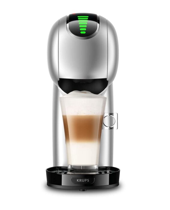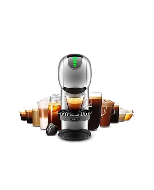 Krups GENIO S TOUCH Silver е елегантна и усъвършенствана кафемашина с капсули, съвместима с NESCAFÉ Dolce Gusto, която предлага професионално качество на кафето у дома. С компактните си размери и изчистен дизайн с метални извивки, тя се вписва идеално във всяка кухня, без да заема излишно място.