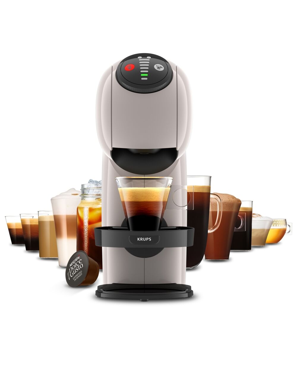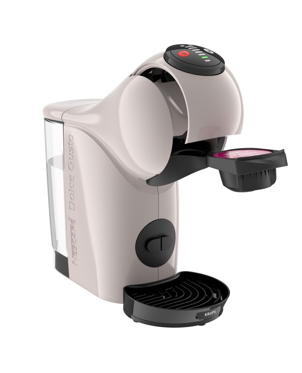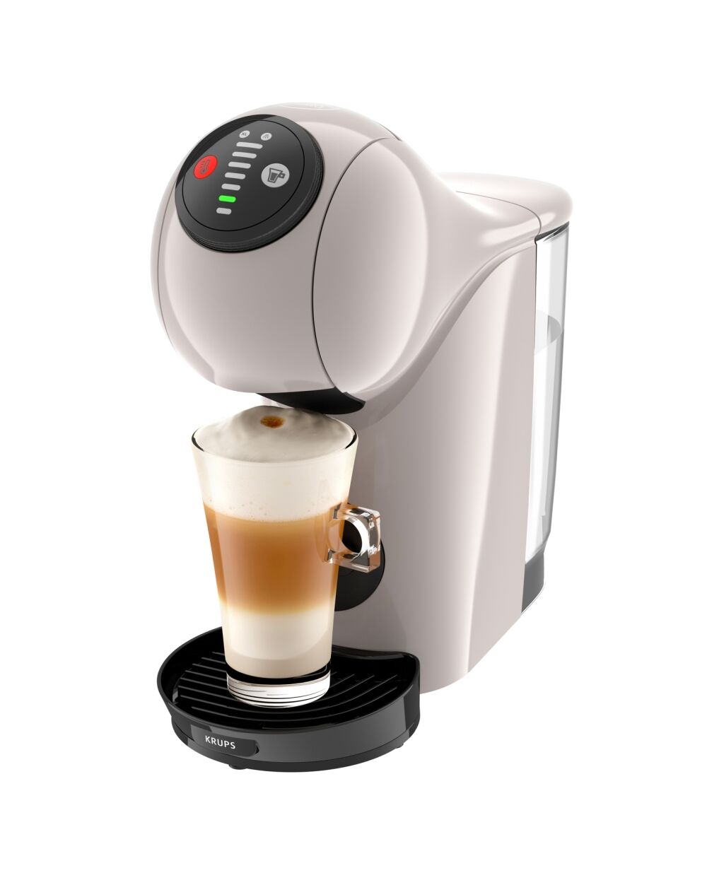 Krups Genio S Taupe е елегантна и компактна капсулна кафемашина, която ви позволява да се насладите на професионално приготвено кафе във вашата кухня. С натискането на един бутон можете да приготвите еспресо, капучино, лате макиато, горещ шоколад, чай и още над 30 напитки – както топли, така и студени.