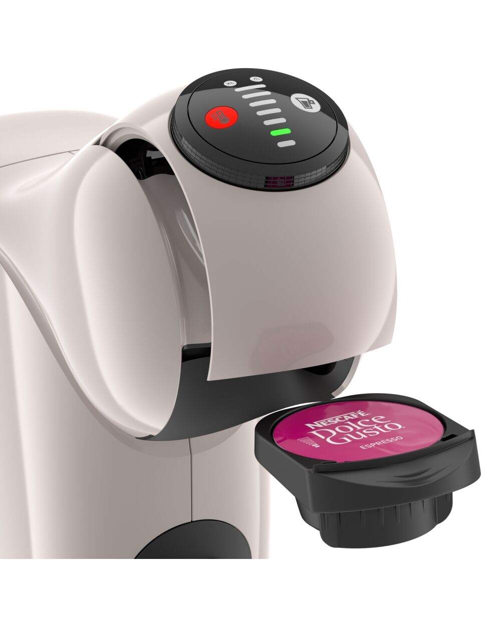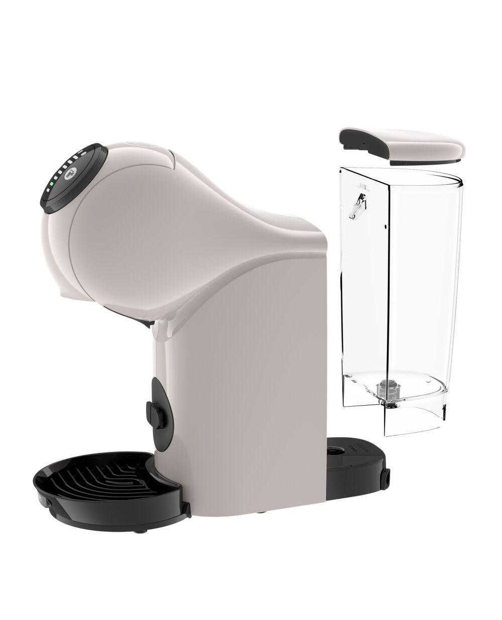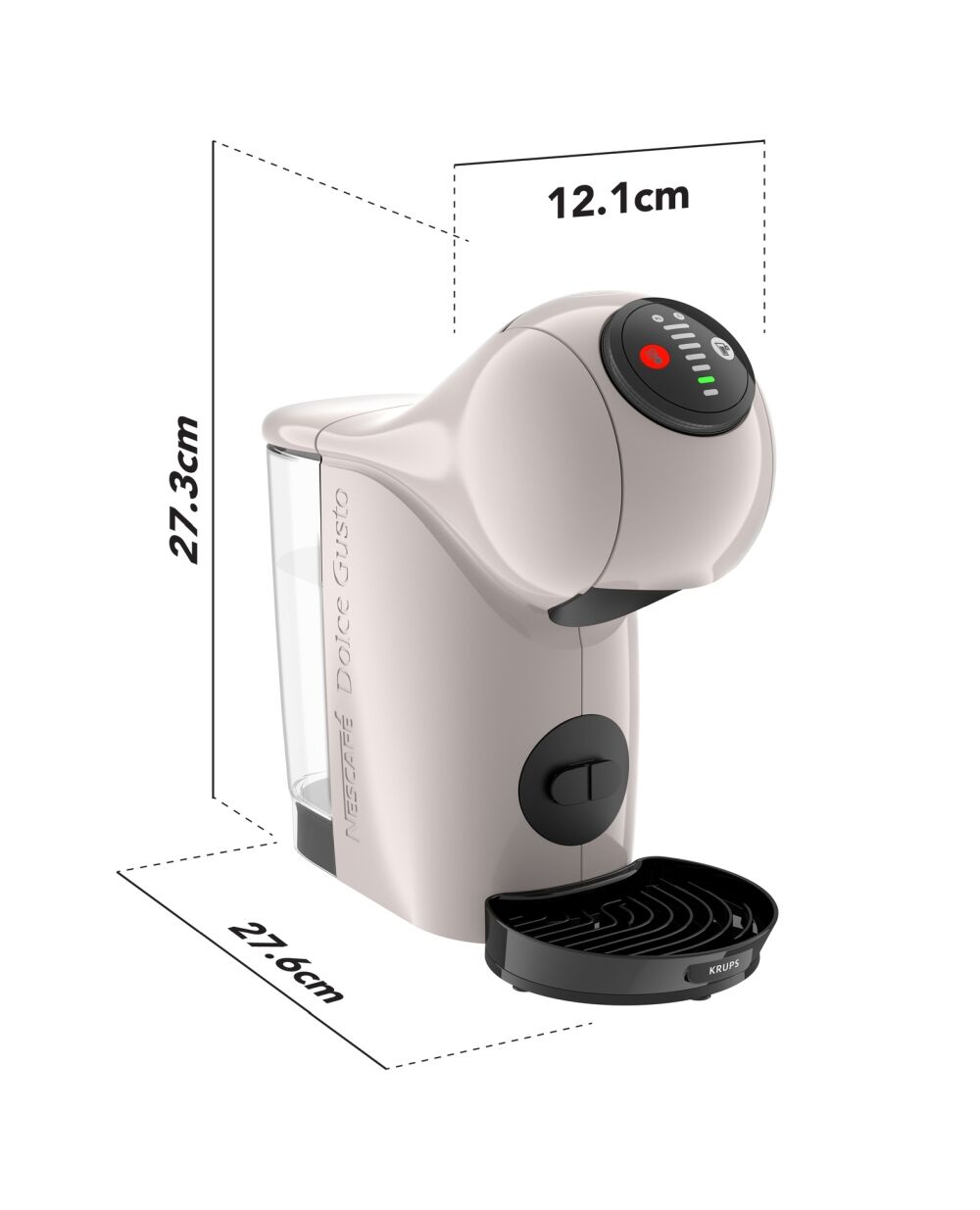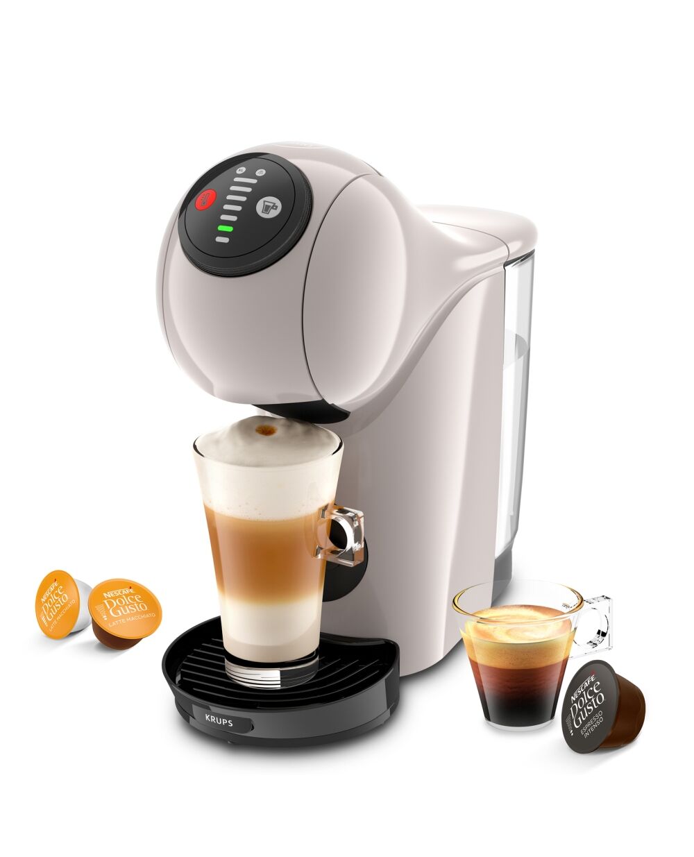 Krups Genio S Taupe е елегантна и компактна капсулна кафемашина, която ви позволява да се насладите на професионално приготвено кафе във вашата кухня. С натискането на един бутон можете да приготвите еспресо, капучино, лате макиато, горещ шоколад, чай и още над 30 напитки – както топли, така и студени.