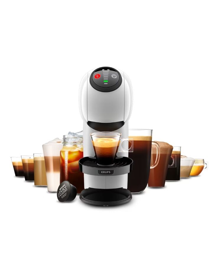 Насладете се на професионално кафе у дома с кафемашината Krups Genio S White, съвместима с капсули NESCAFÉ® Dolce Gusto®. Благодарение на модерния си дизайн, високо налягане от 15 бара и автоматични функции, тя ви предлага бързо, лесно и вкусно кафе – от ароматно еспресо до кадифено лате макиато или дори студени напитки.