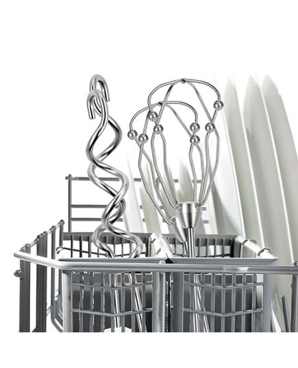 Уредът е удобен при работа и притежава стилен външен вид. В комплект с бъркалките, миксерът Bosch FineCreamer 500 W White включва и блендер от неръждаема стомана, както и мерителна кана.