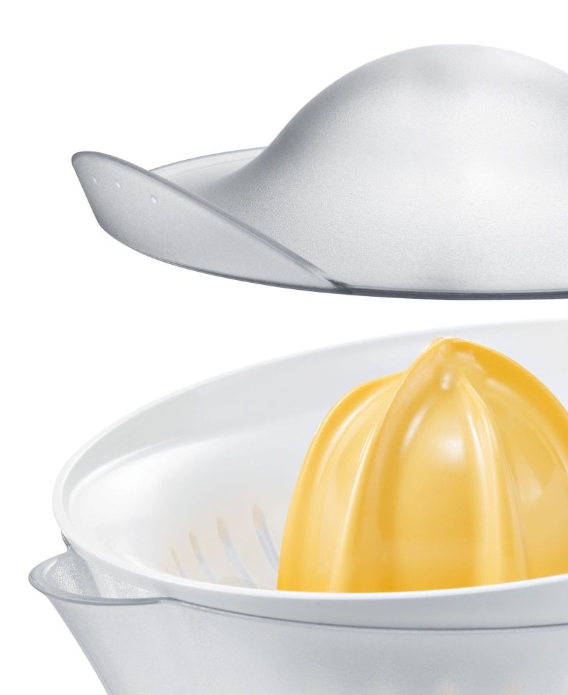 Универсалната полусфера на Цитрус пресата Bosch VitaPress 25W 800ml White е проектирана така, че да може да изцежда както големи, така и малки плодове.