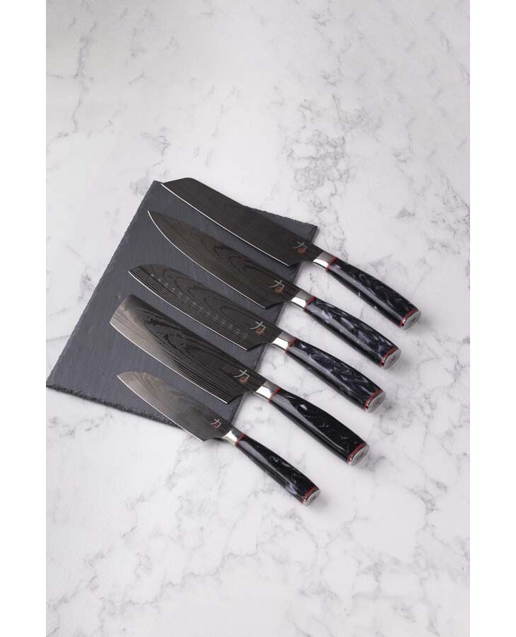 Серията Tetsu впечатлява с острие от висококачествена неръждаема стомана, специално изковано за дълъг живот и висока устойчивост. Незалепващото покритие с ефект на дамаска стомана не само подобрява визията, но и улеснява рязането на всякакъв тип храни.