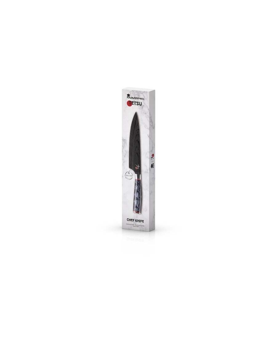 Ножът на главния готвач Masterpro Tetsu 20 см е създаден в духа на традиционното японско майсторство, комбинирайки луксозен дизайн, прецизности изключителна здравина. С него режете като истински японски готвач – удобно, безопасно и с максимален контрол върху всяко движение.