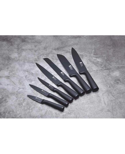 Изключително острият нож улеснява работата във всяка кухня. Специалното му покритие предотвратява залепването на продуктите по острието. Дръжката е с ергономичен дизайн, който осигурява стабилен захват. Олекотената изработка позволява продължителна употреба без усещане за натоварване. - Висококачествено незалепващо, черно покритие - Олекотена дръжка с меко, водоустойчиво покритие