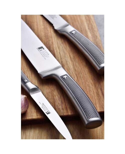 Сатенен финиш – предпазва от пръстови отпечатъци и залепване на храната по острието.