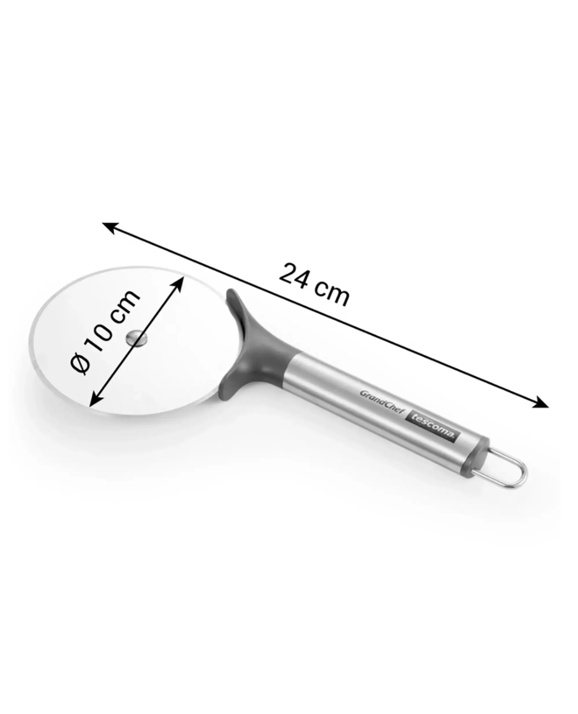 Ножът за пица Tescoma GrandCHEF е идеалният кухненски инструмент за перфектно и лесно разрязване на пици с дебел или тънък блат. Благодарение на здравото и остро режещо колело, той е подходящ не само за пица, но и за кексове, сладкиши, суфле и други десерти, осигурявайки гладък и прецизен разрез без разкъсване на текстурата.