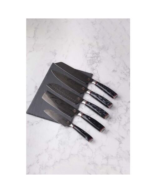 Колекцията Tetsu е създадена за тези, които искат да се докоснат до истинското японско майсторство в кухнята. Ножът Сантоку Masterpro Tetsu комбинира стил, функционалност и издръжливост, превръщайки подготовката на храната в истинско удоволствие. Подходящ е за рязане на зеленчуци, месо и риба, като гарантира комфорт, безопасност и професионални резултати във всяка кухня.