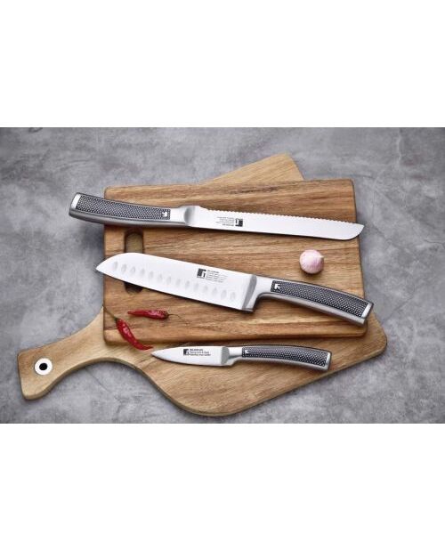 Този нож Сантоку комбинира съвременен дизайн, издръжливост и отлично представяне при ежедневна употреба. Серията Bergner Harley е създадена за хора, които държат на удобството, безопасността и ефективността в кухнята. Перфектен за рязане, кълцане и филетиране – идеален помощник както за професионални готвачи, така и за любители.