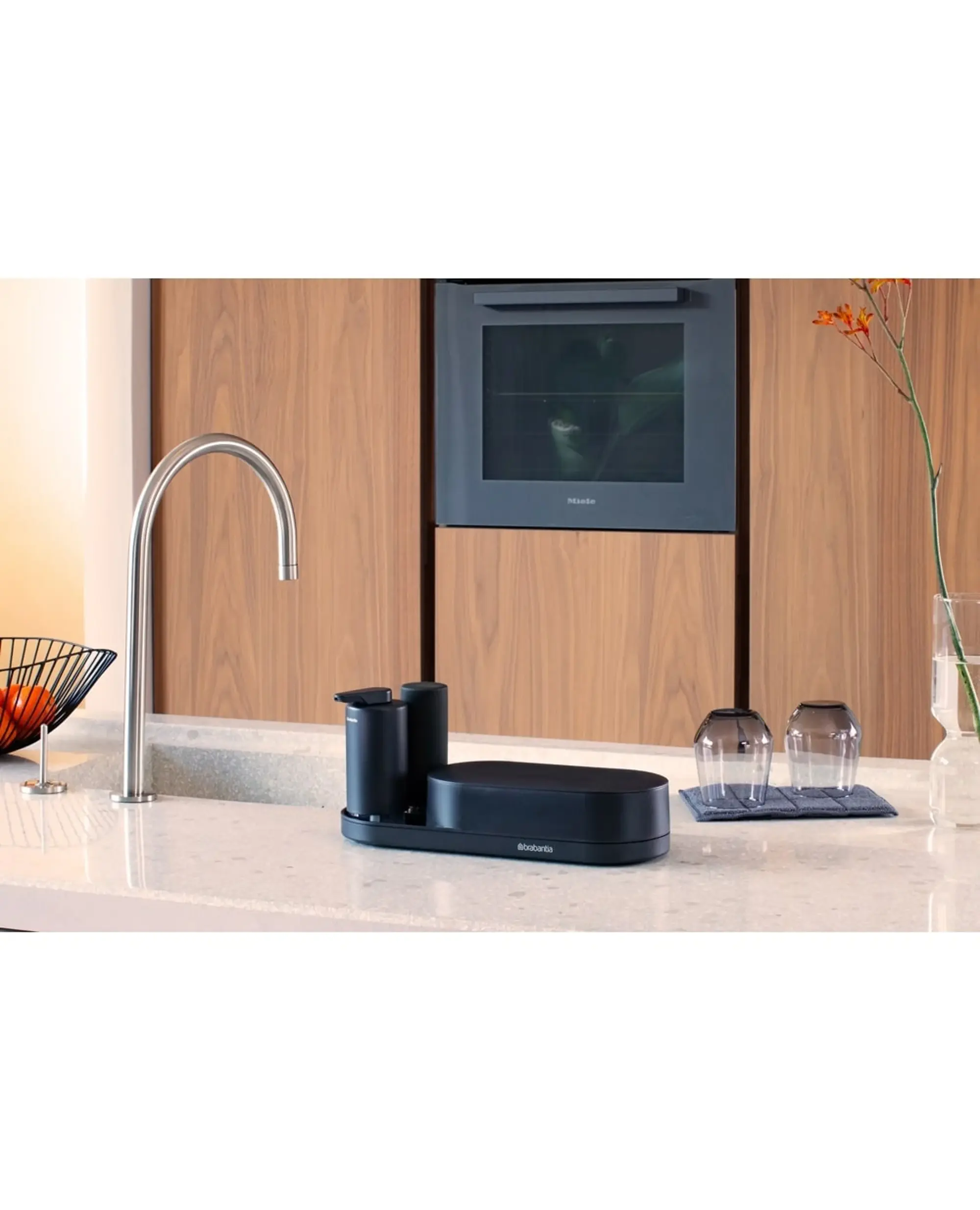 Този комплект за мивка съчетава елегантност, практичност и качество, като улеснява поддържането на ред около мивката. Осигурява бързо съхнене на мокрите аксесоари, удобен достъп до препарати и лесно почистване. Brabantia гарантира дългосрочна употреба и премиум дизайн за модерни домове.