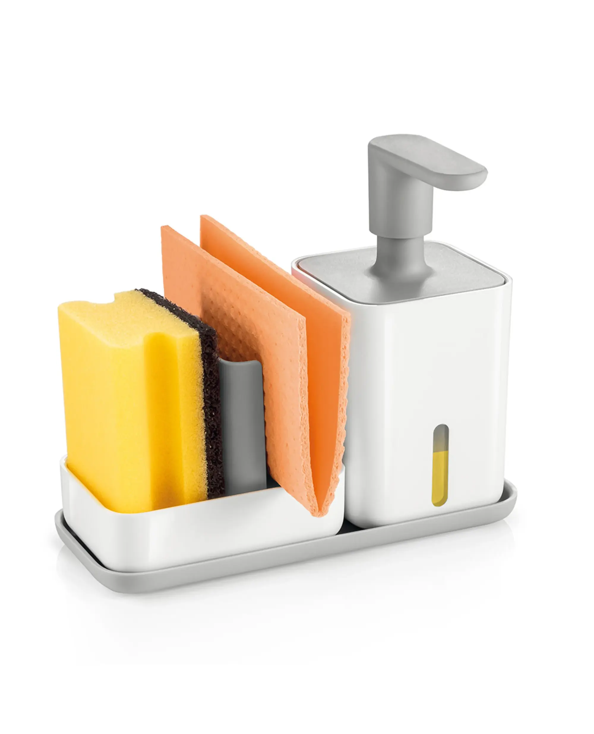 Органайзерът за мивка Tescoma Puro е практично и стилно решение за поддържане на ред и удобство около кухненската мивка. Той комбинира дозатор за течен сапун и поставка за гъба и кърпа, осигурявайки подредено, чисто и функционално пространство.